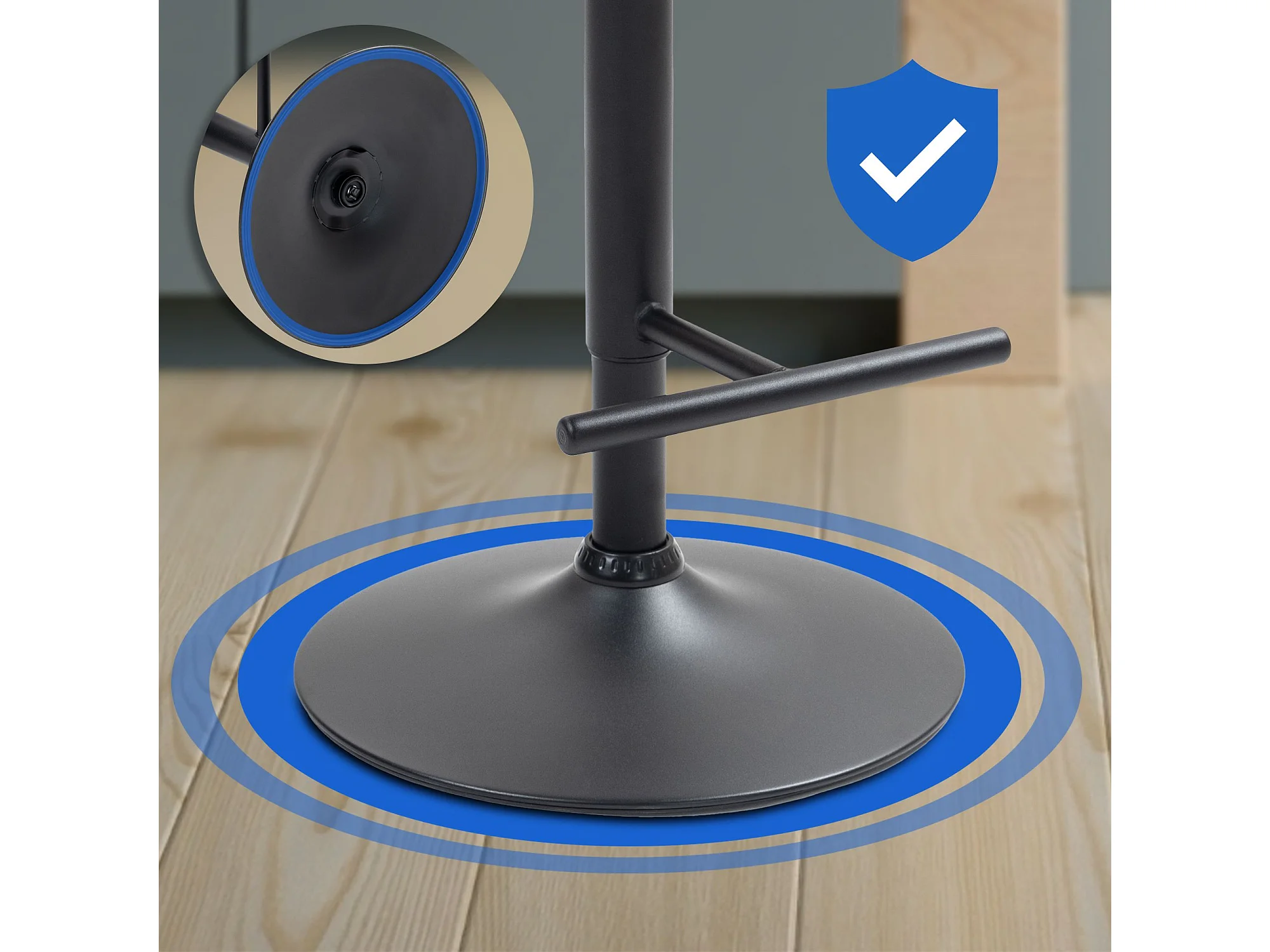 Lot de 2 Tabouret de bar - Similicuir & Noir - Gris - Damar