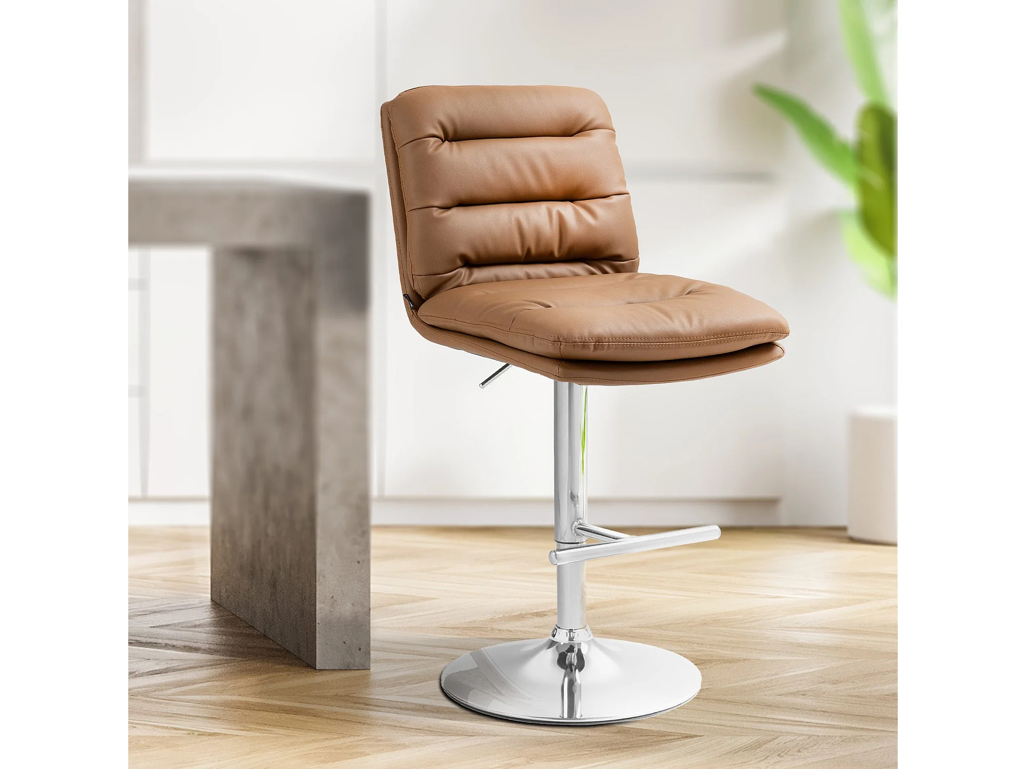 Lot de 2 Tabouret de bar - Similicuir & Chrome - Marron clair - Damar