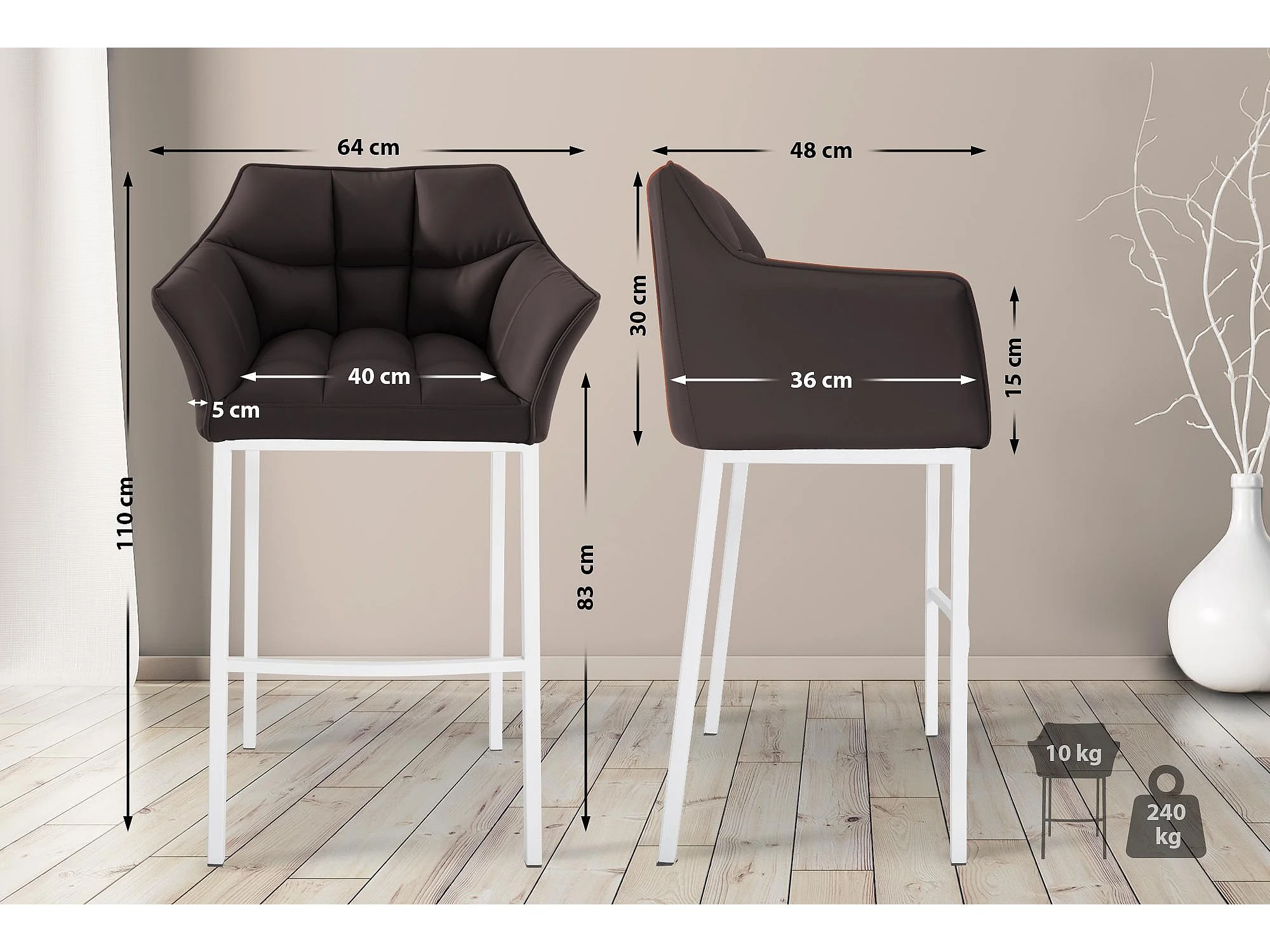 Lot de 2 Tabouret de bar - Similicuir & Blanc - Marron - DAMASO
