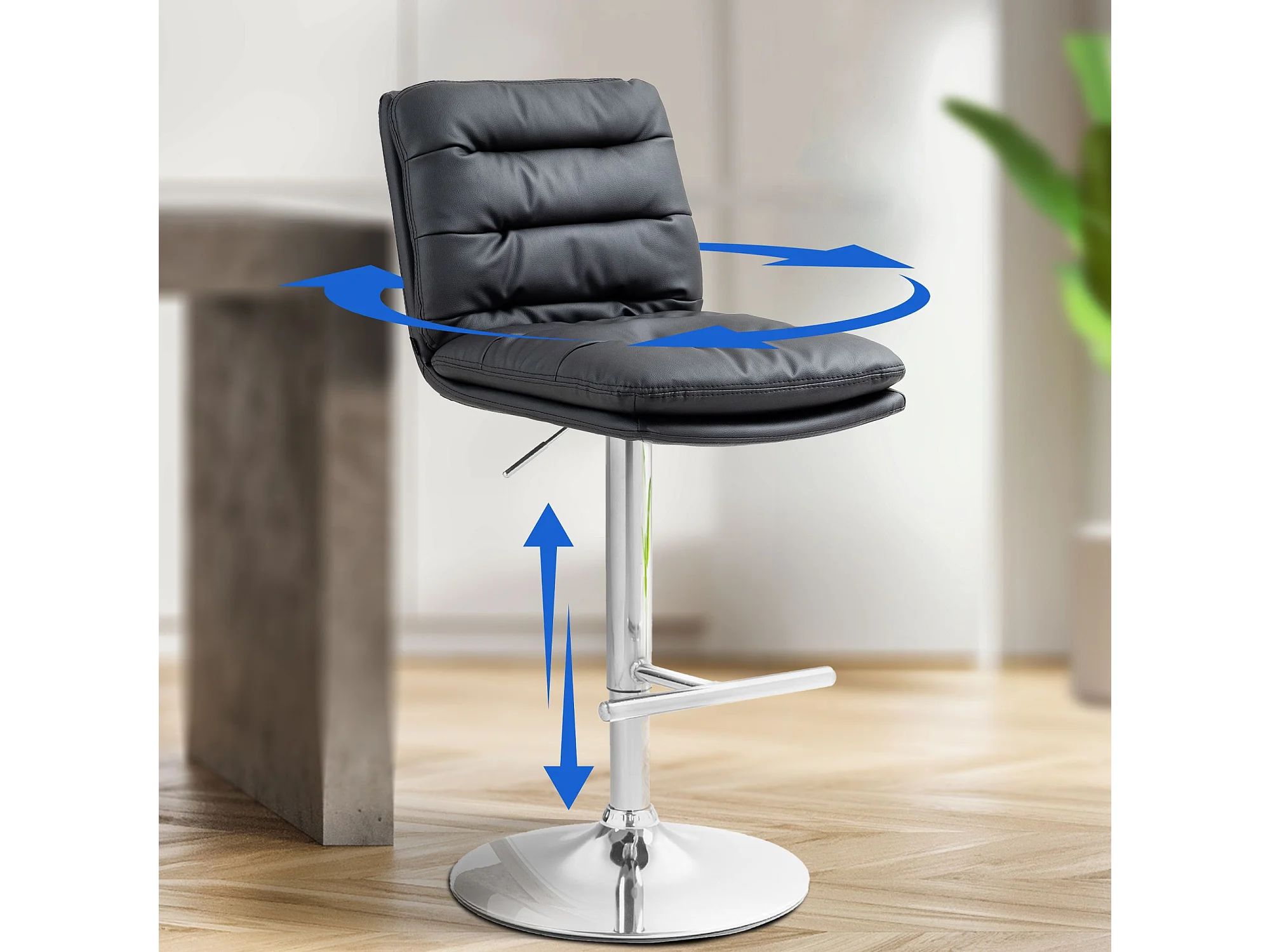 Lot de 2 Tabouret de bar - Similicuir & Chrome - Noir - Damar