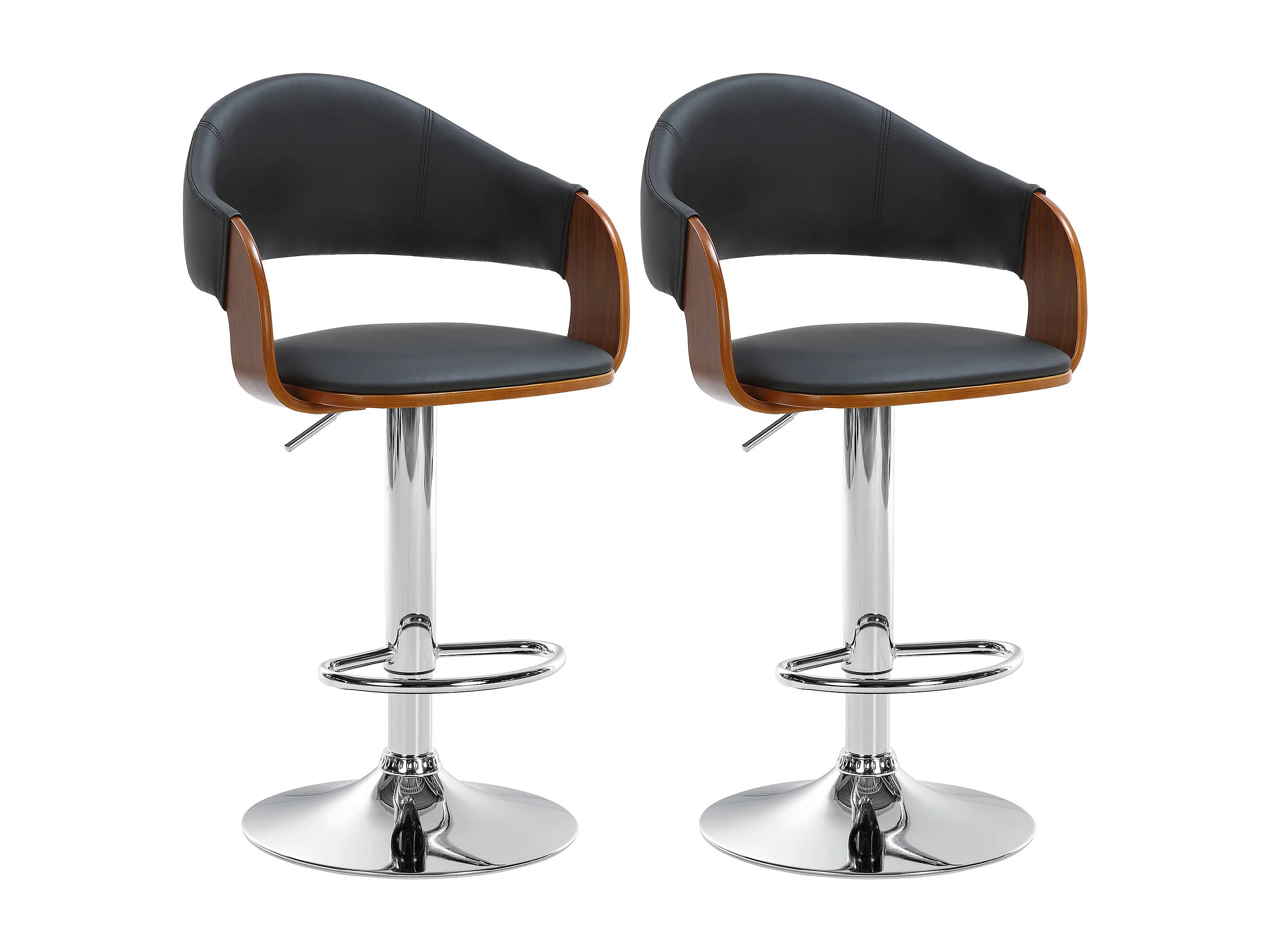 Lot de 2 Tabouret de bar - Similicuir - Noyer / Noir - Nilse