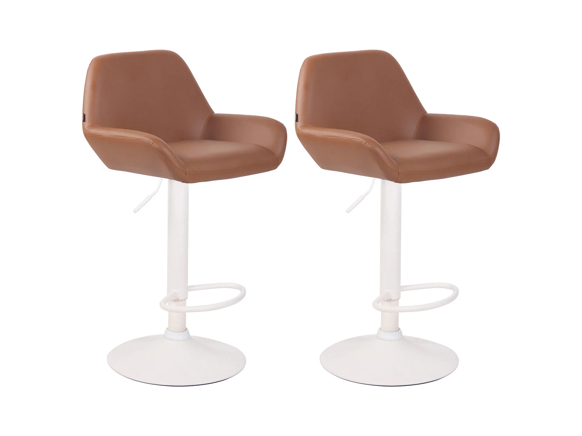 Lot de 2 Tabouret de bar - Similicuir & Blanc - Marron clair - DAMASO