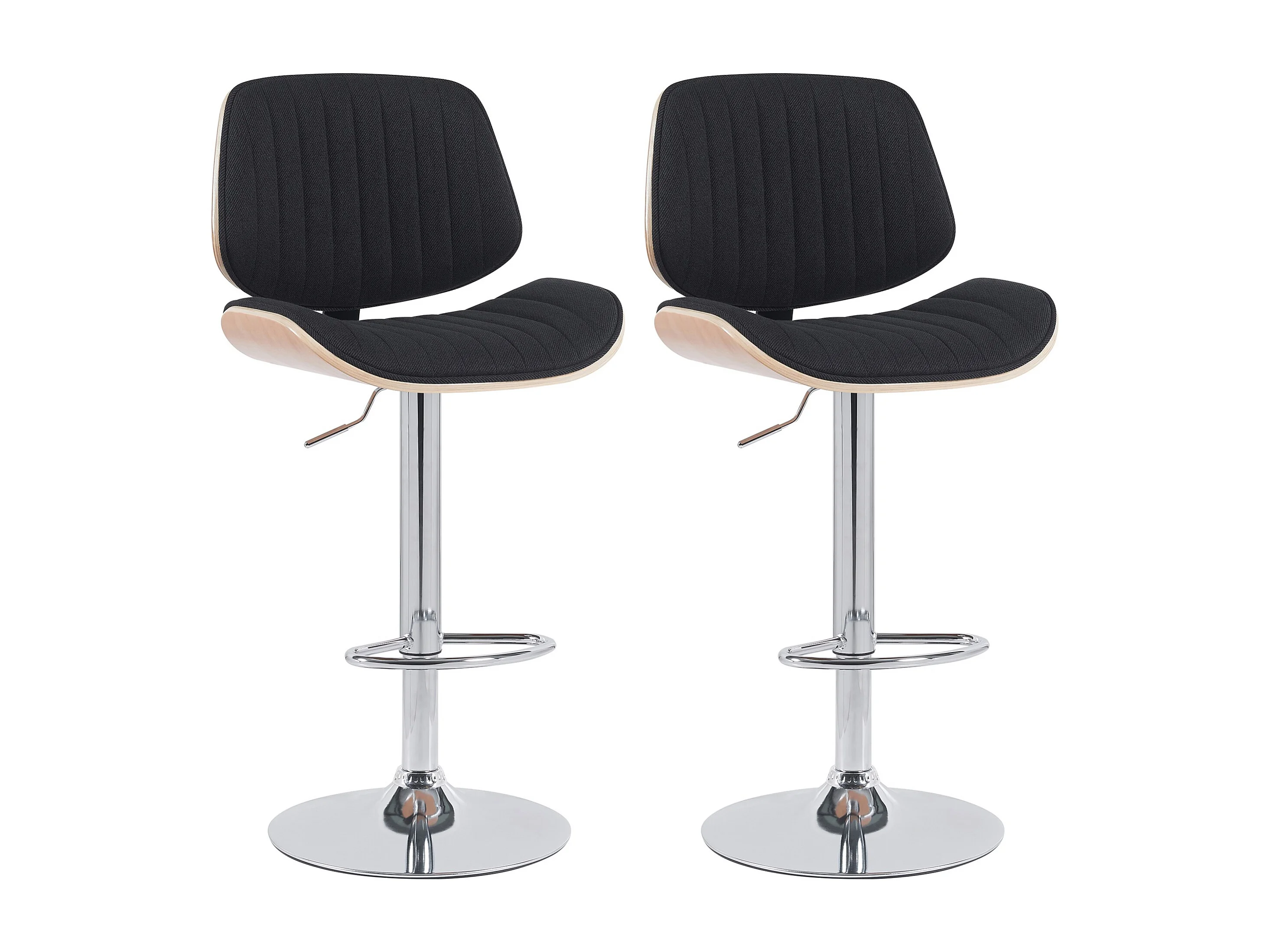 Lot de 2 Tabouret de bar - Tissu & Chrome - Nature / Noir - Clawson