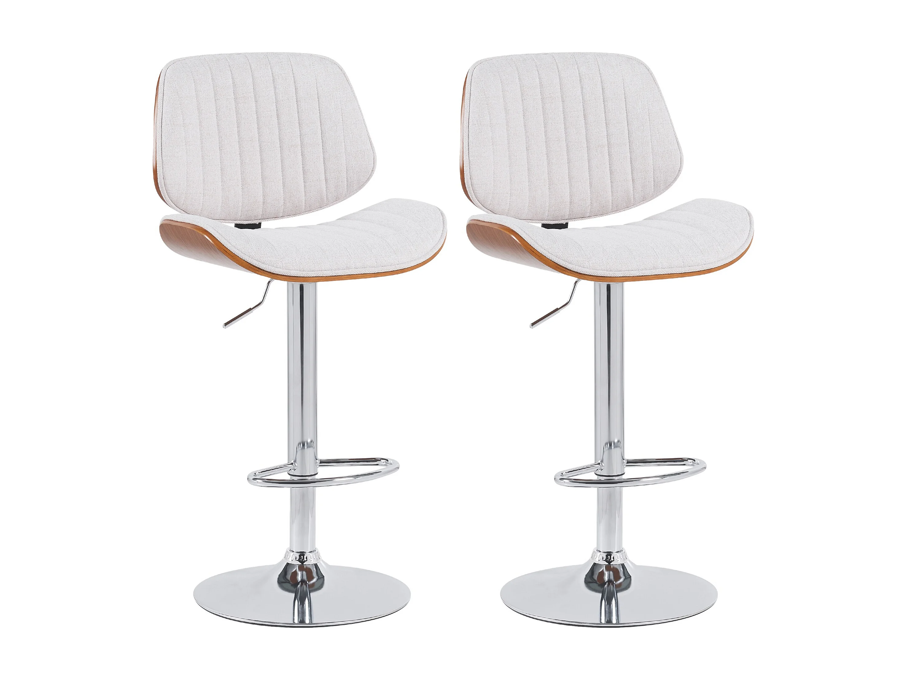 Lot de 2 Tabouret de bar - Tissu & Chrome - Noyer / Crème - Clawson