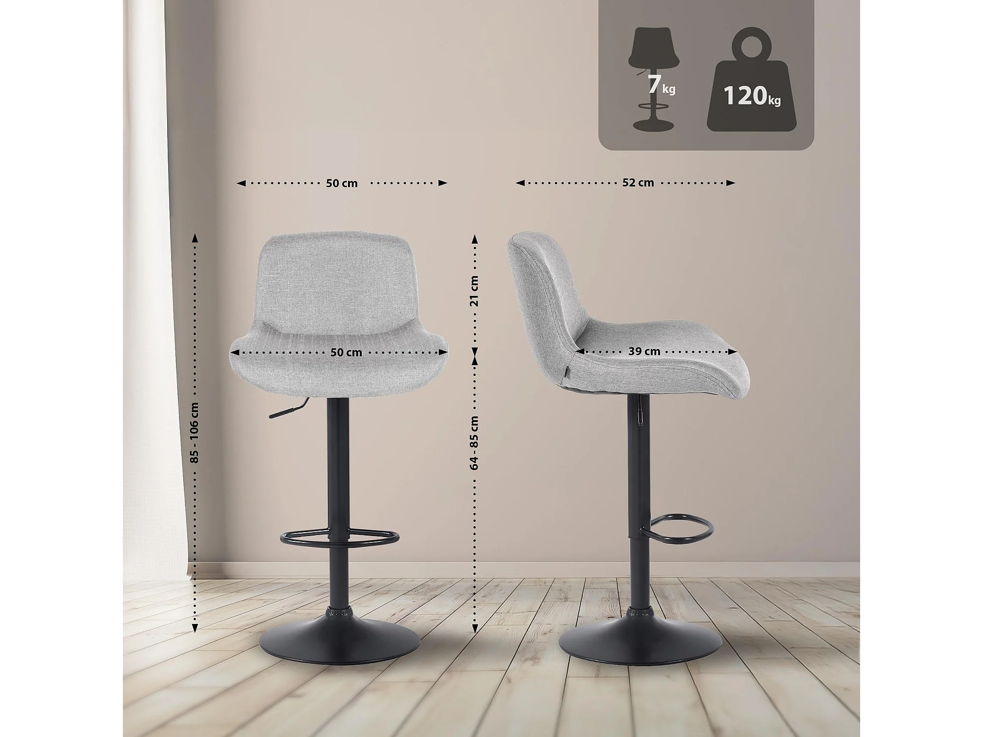 Lot de 2 Tabouret de bar - Tissu - Gris clair - Peru