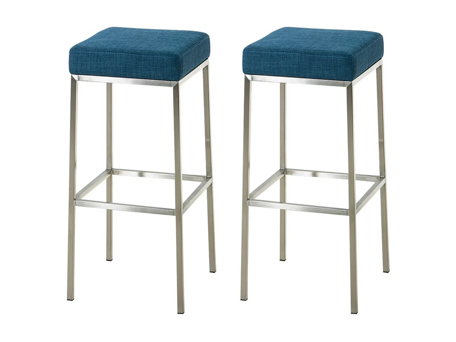 Lot de 2 Tabouret de bar - Tissu & Acier inoxydable - Bleu - Montreal 80