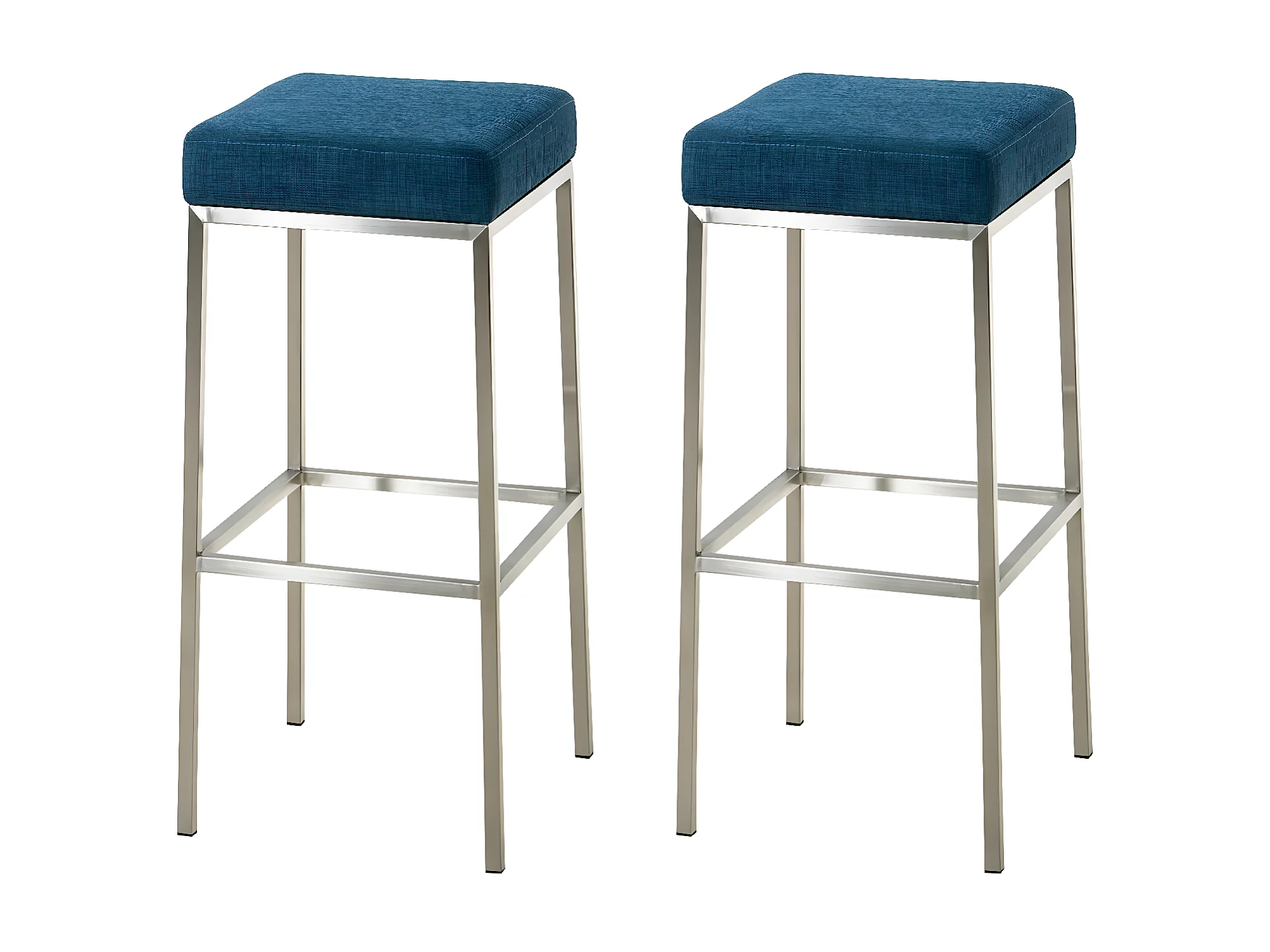 Lot de 2 Tabouret de bar - Tissu & Acier inoxydable - Bleu - Montreal 85