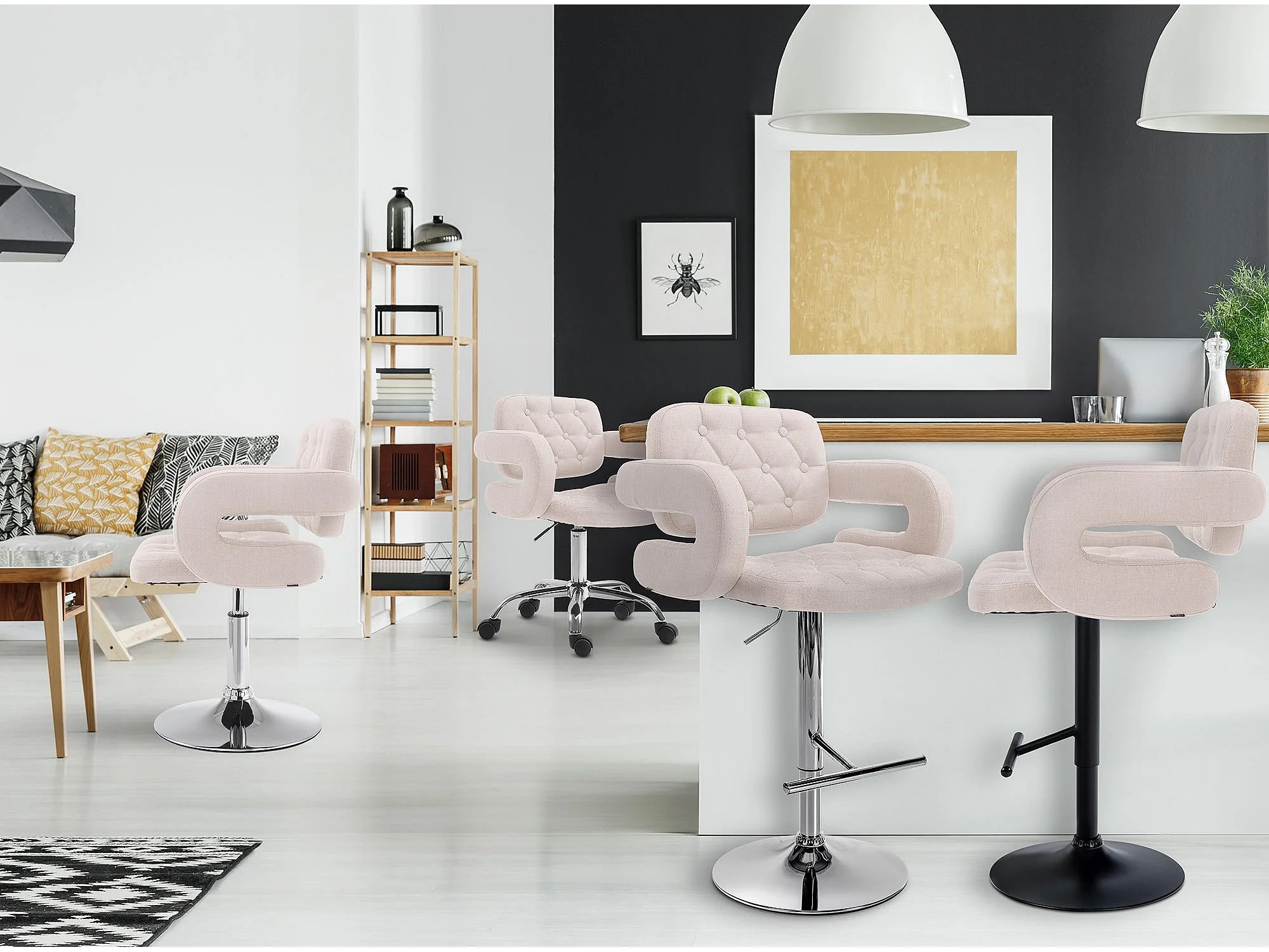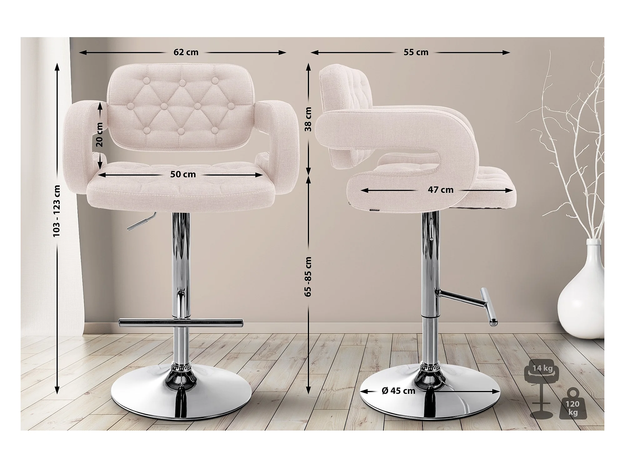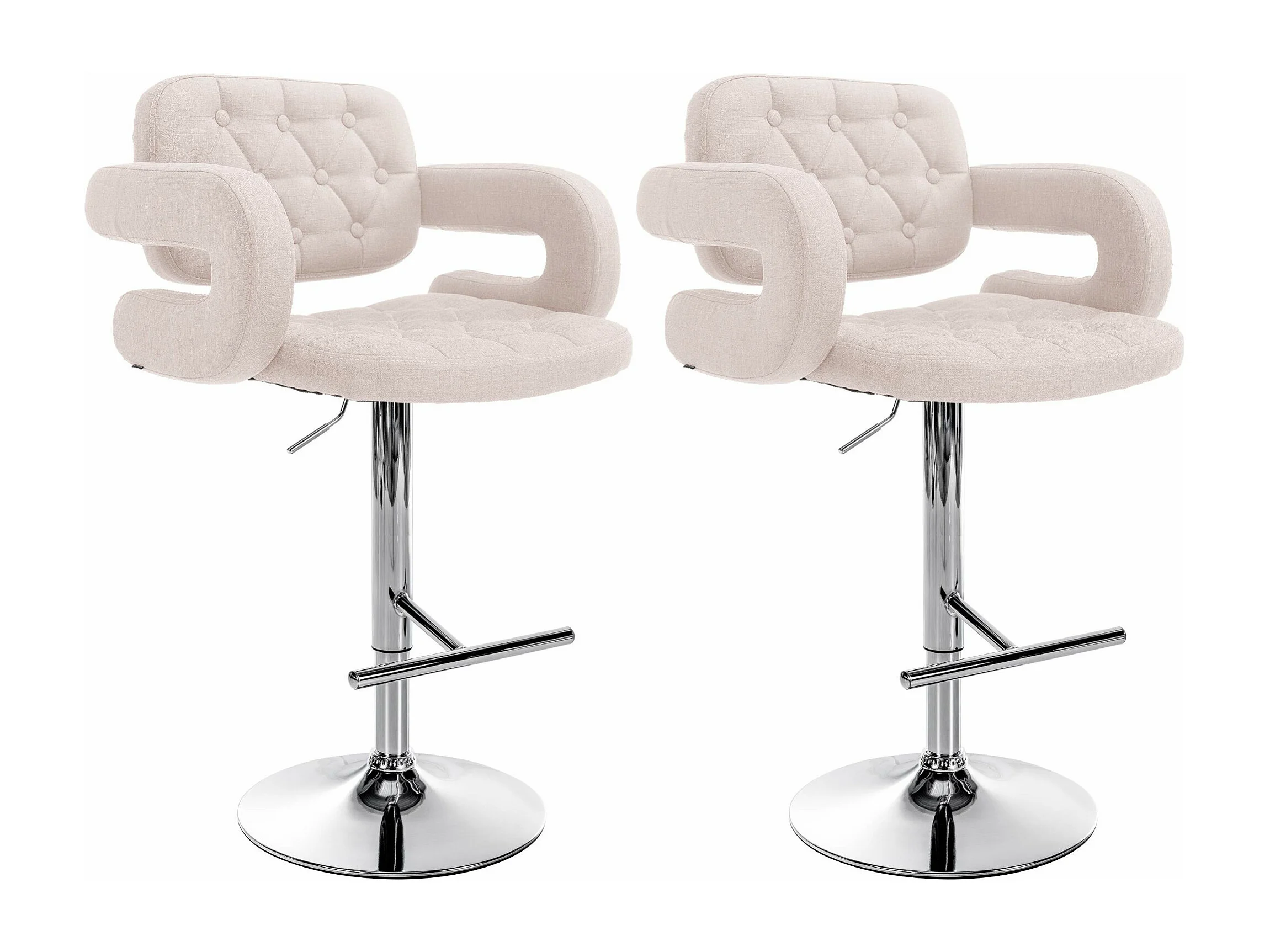 Lot de 2 Tabouret de bar - Tissu & Métal chromé - Beige - Dublin