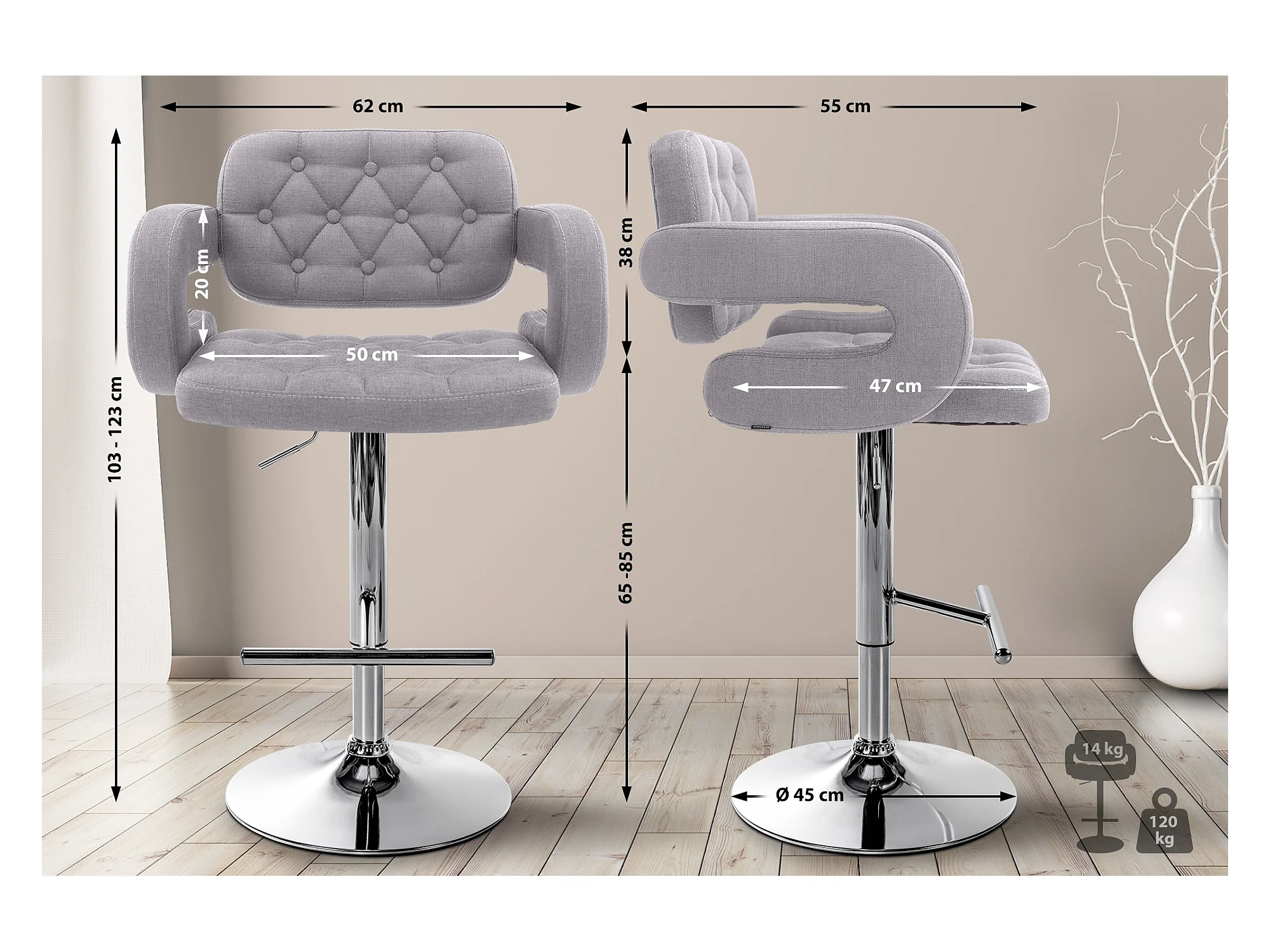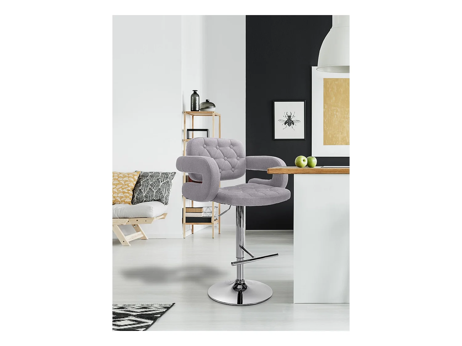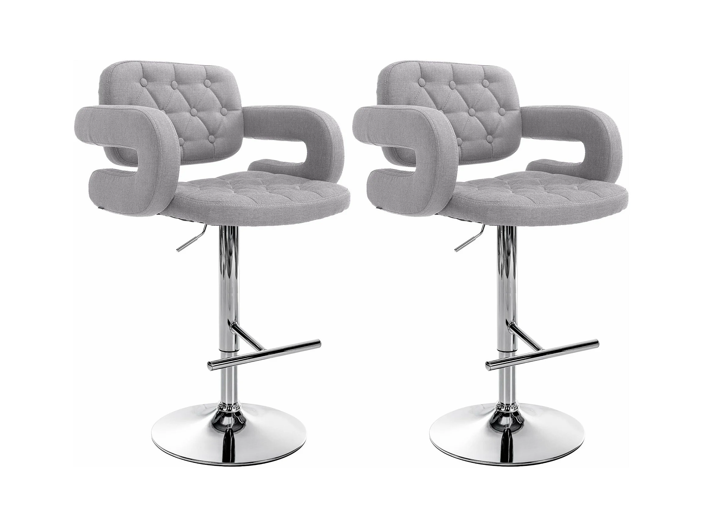 Lot de 2 Tabouret de bar - Tissu & Métal chromé - Gris - Dublin