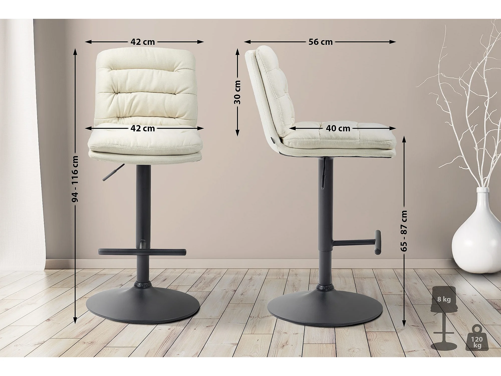 Lot de 2 Tabouret de bar - Tissu & Métal - Crème - Damar