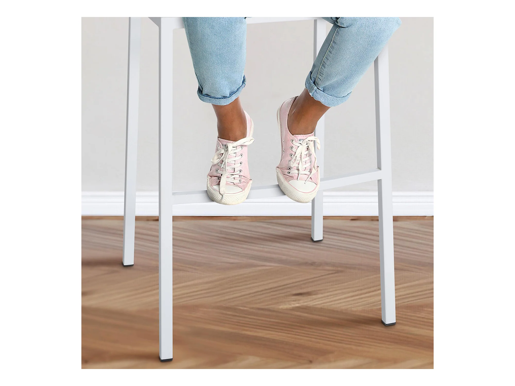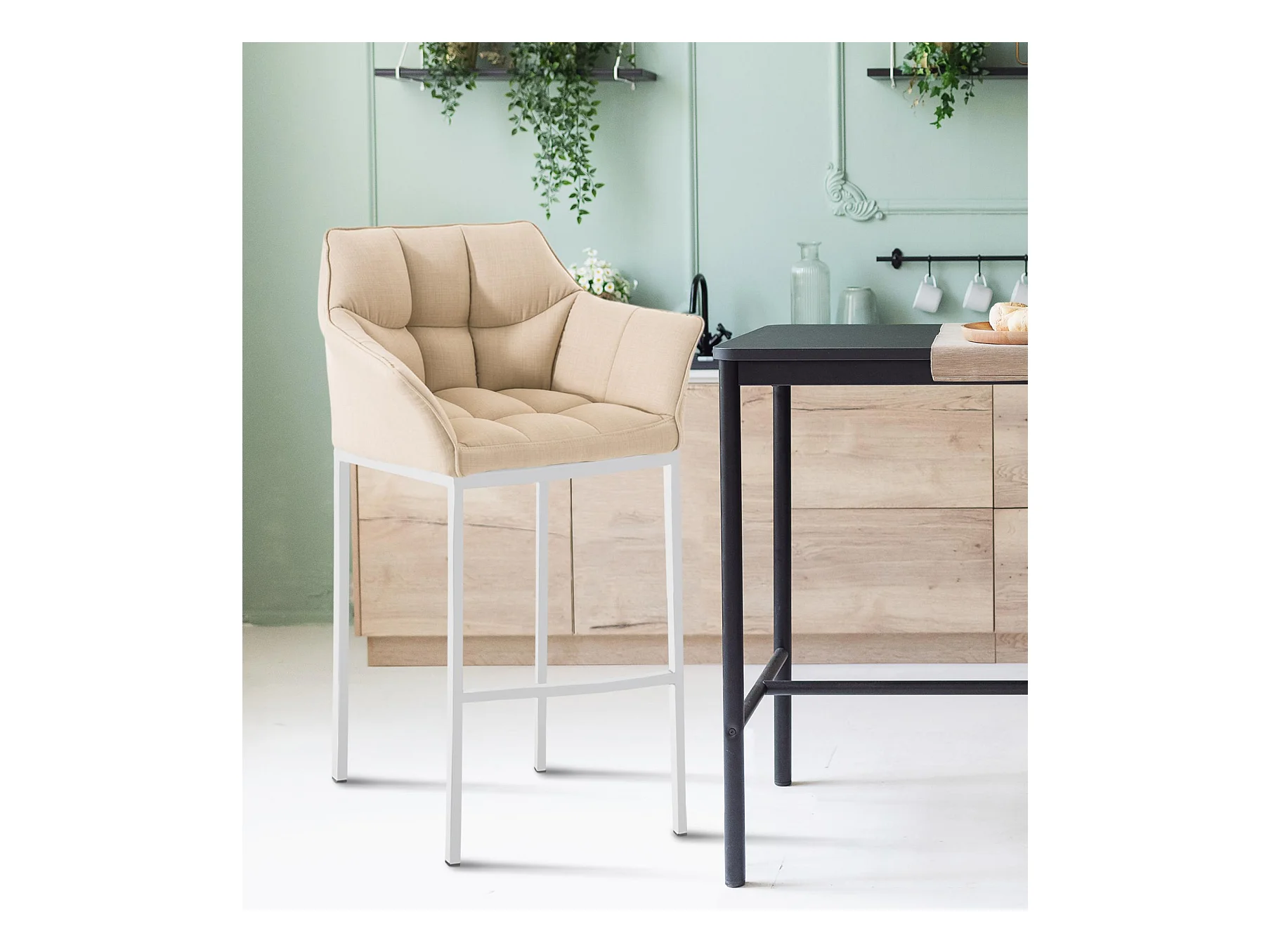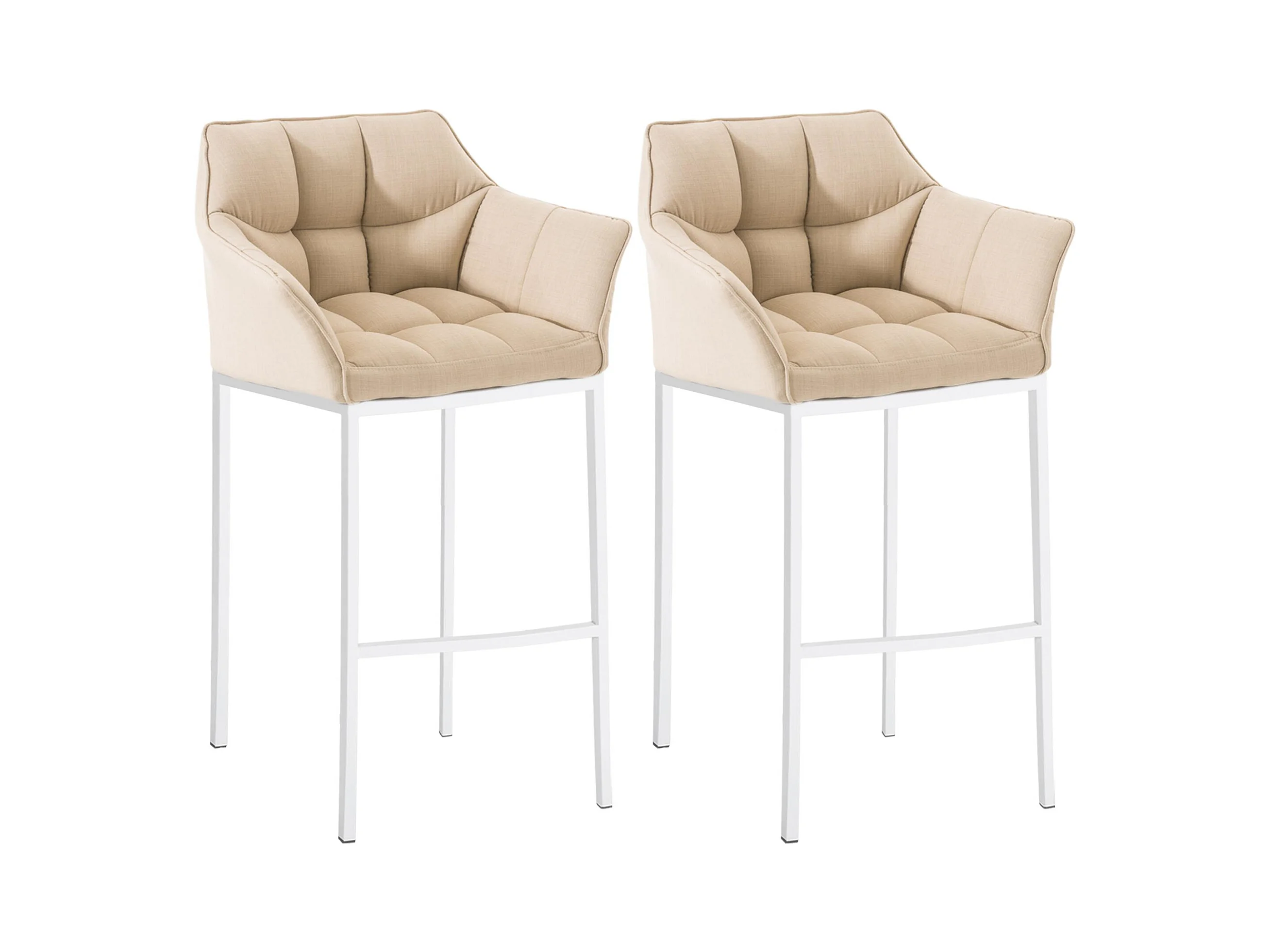 Lot de 2 Tabouret de bar - Tissu & Blanc - Crème - Damaso