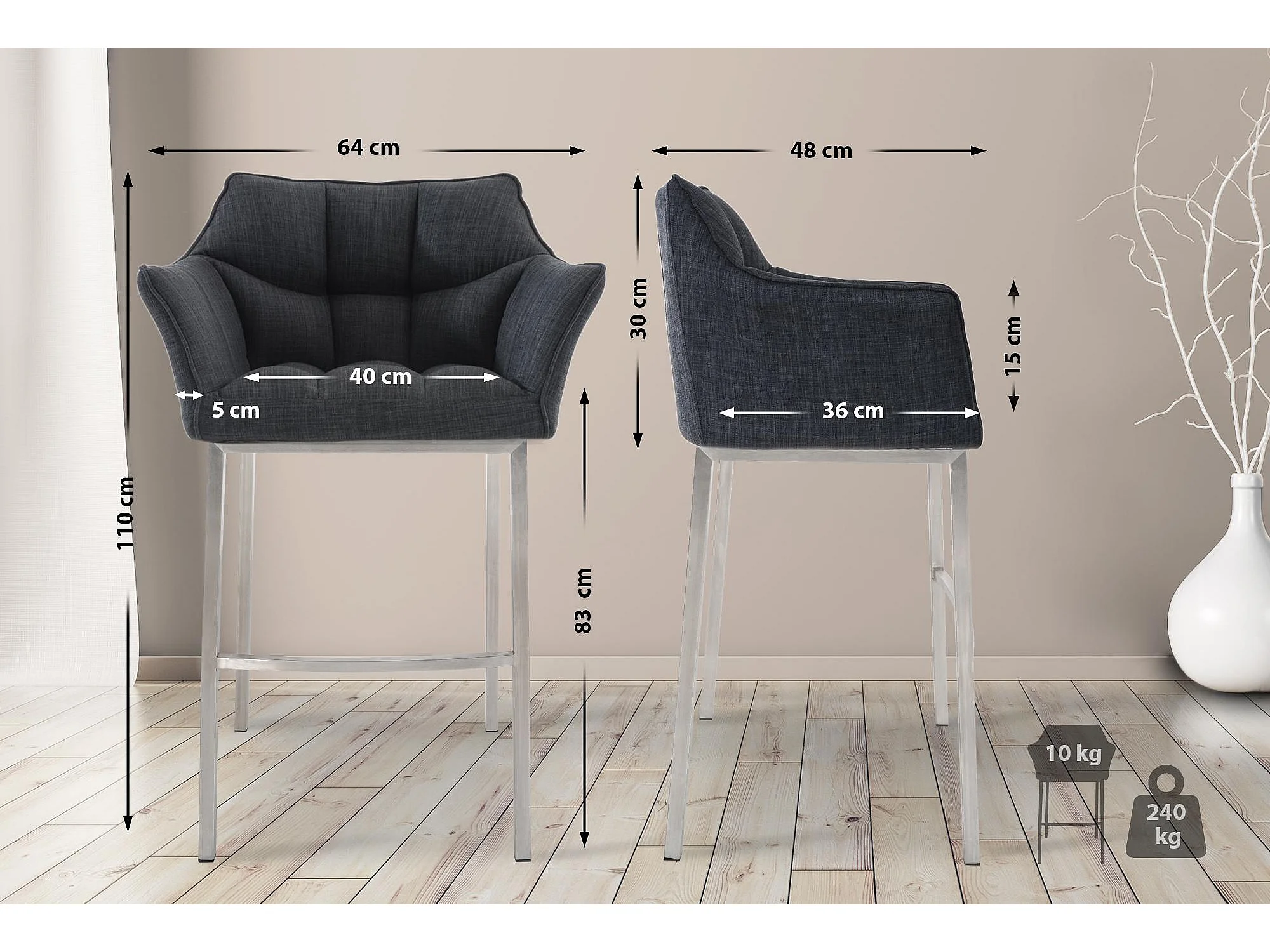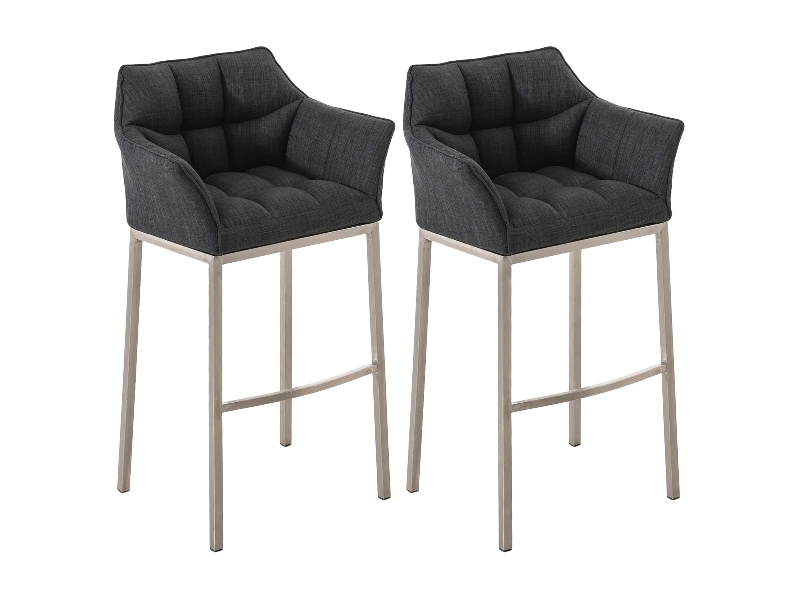 Lot de 2 Tabouret de bar - Tissu & Acier inoxydable - Gris foncé - Damaso