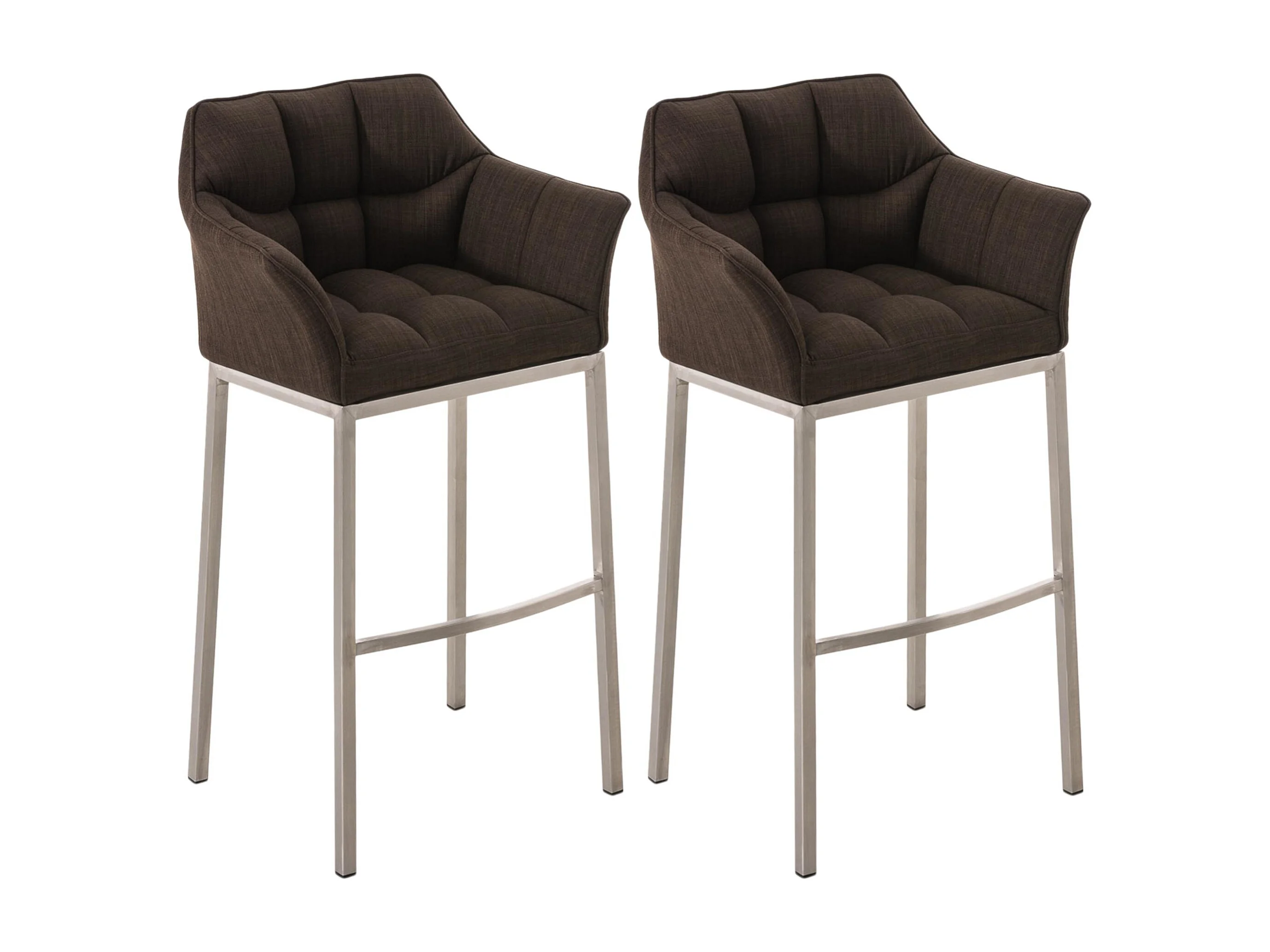 Lot de 2 Tabouret de bar - Tissu & Acier inoxydable - Marron - Damaso