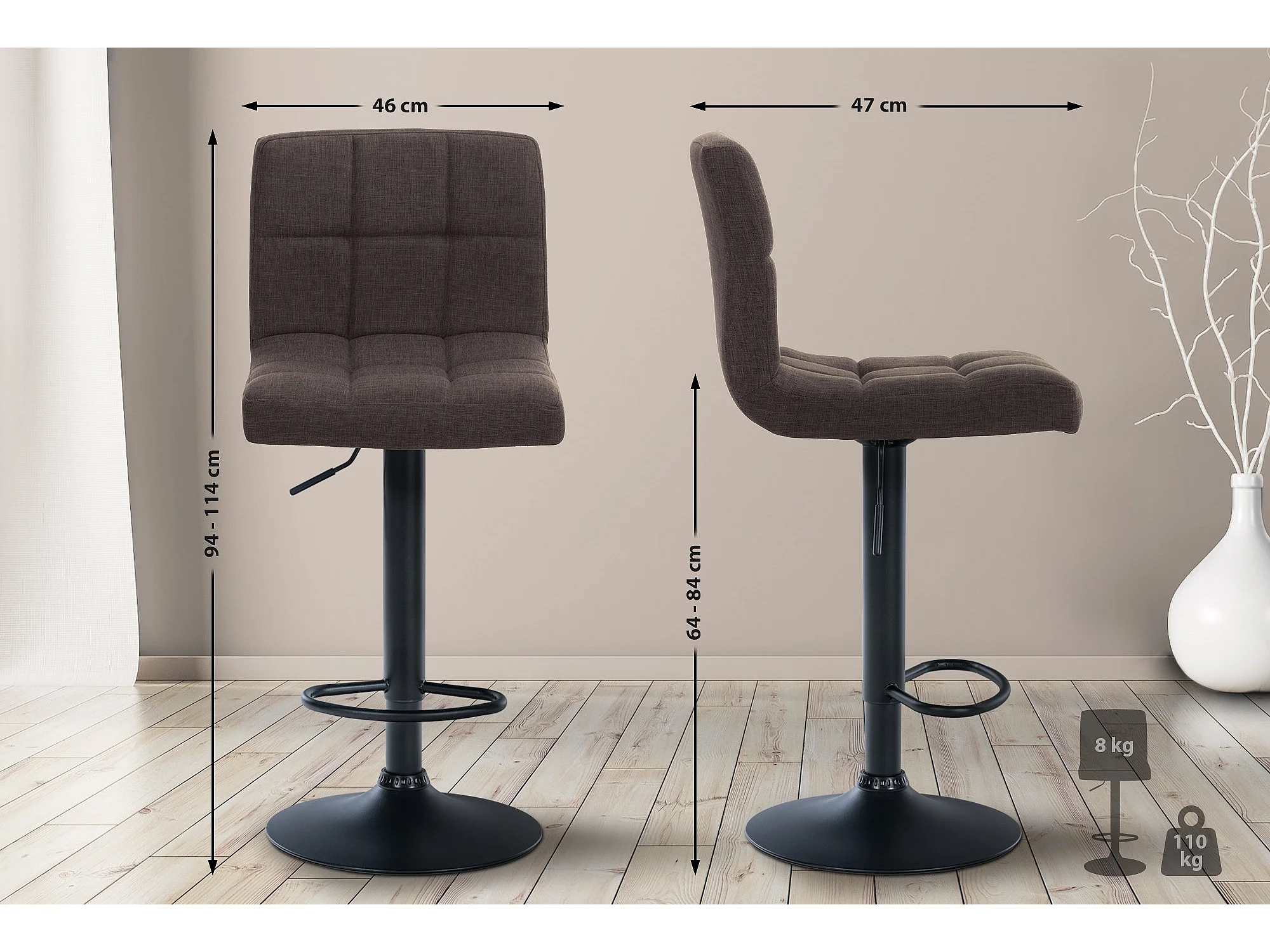 Lot de 2 Tabouret de bar - Tissu & Métal noir mat - Marron - Calma