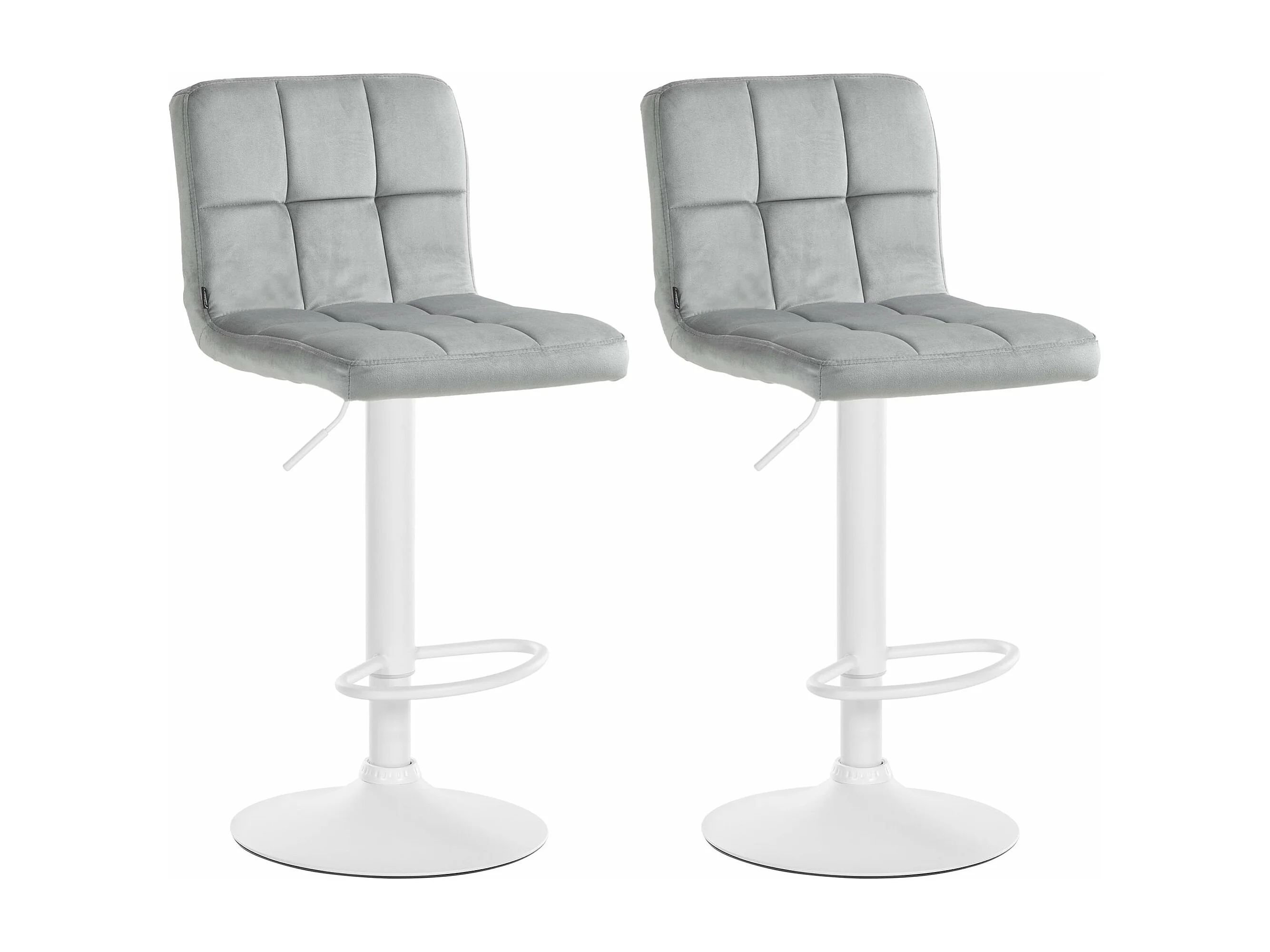 Lot de 2 Tabouret de bar - Velours & Blanc - Gris - Peru