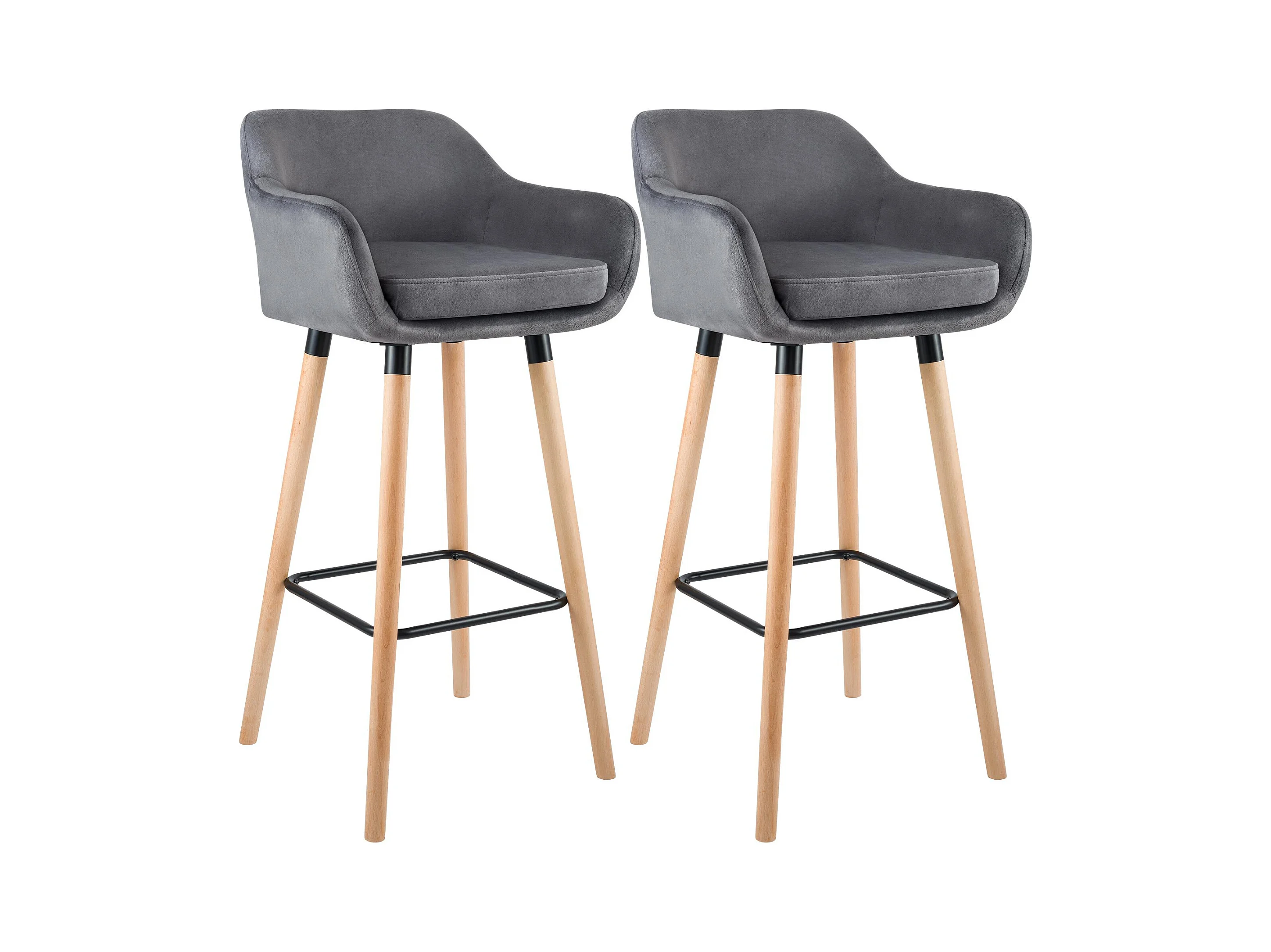 Lot de 2 Tabouret de bar - Velours - Gris - Grant