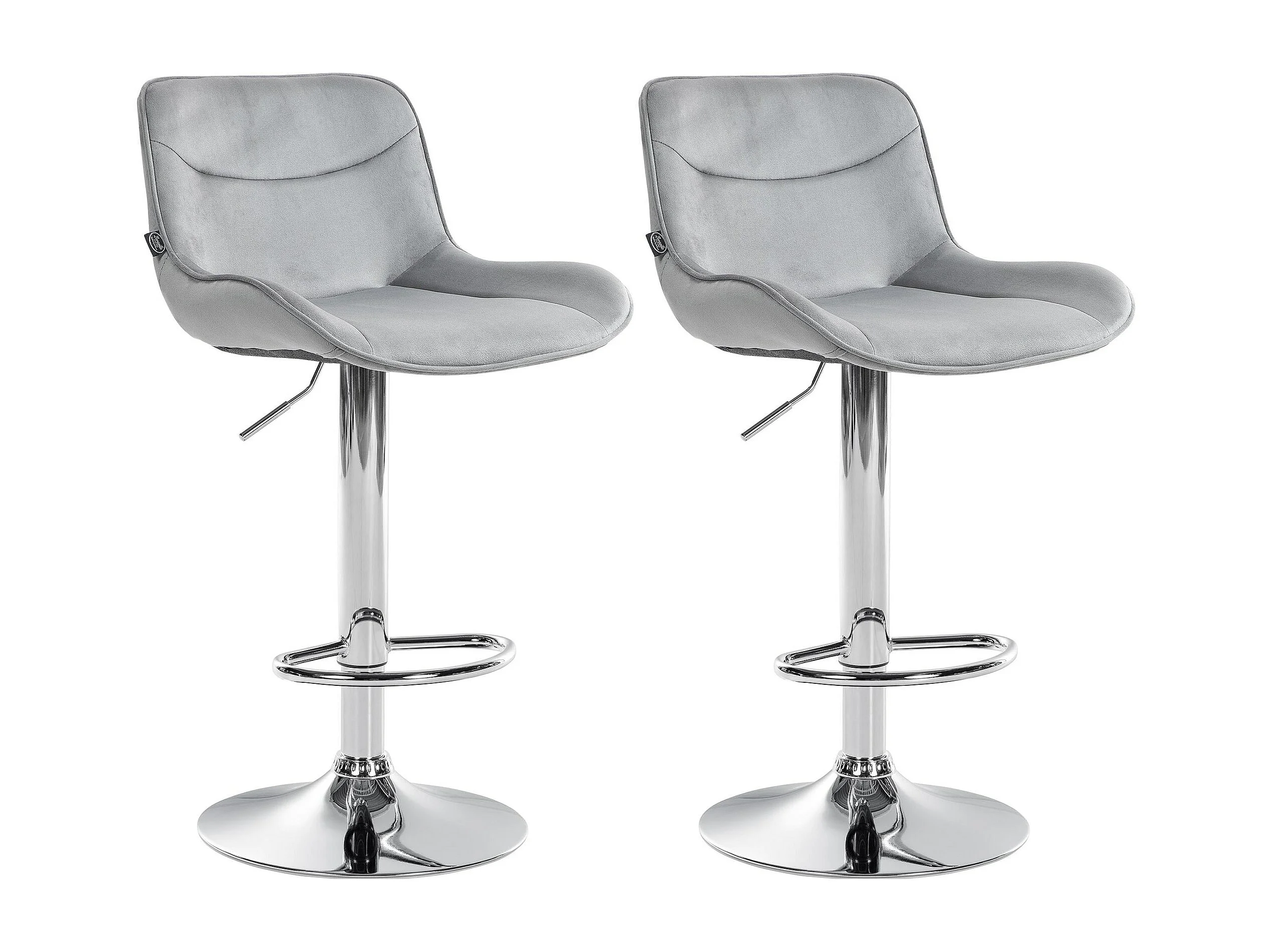 Lot de 2 Tabouret de bar - Velours & Chrome - Gris - Vonore