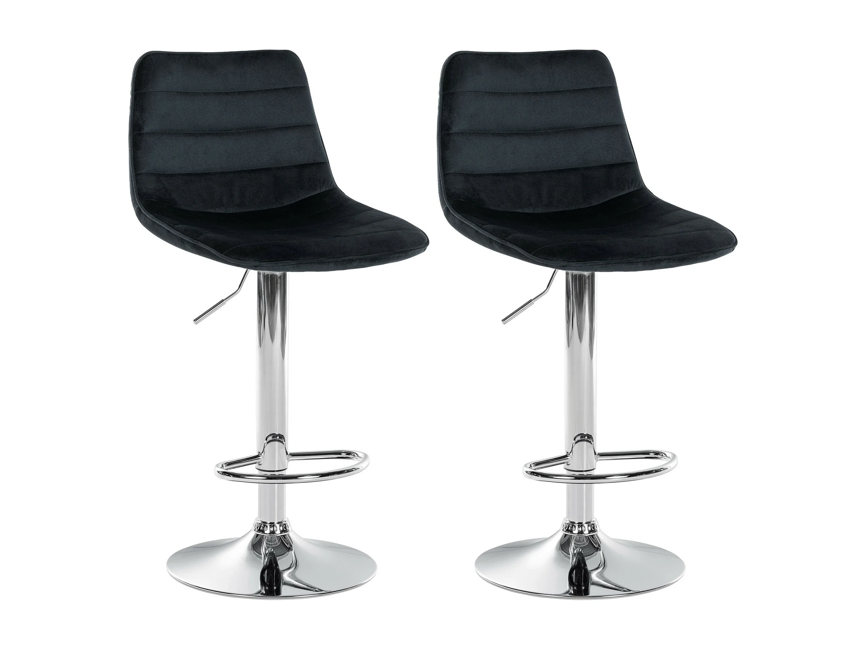 Lot de 2 Tabouret de bar - Velours & Chrome - Noir - Lex