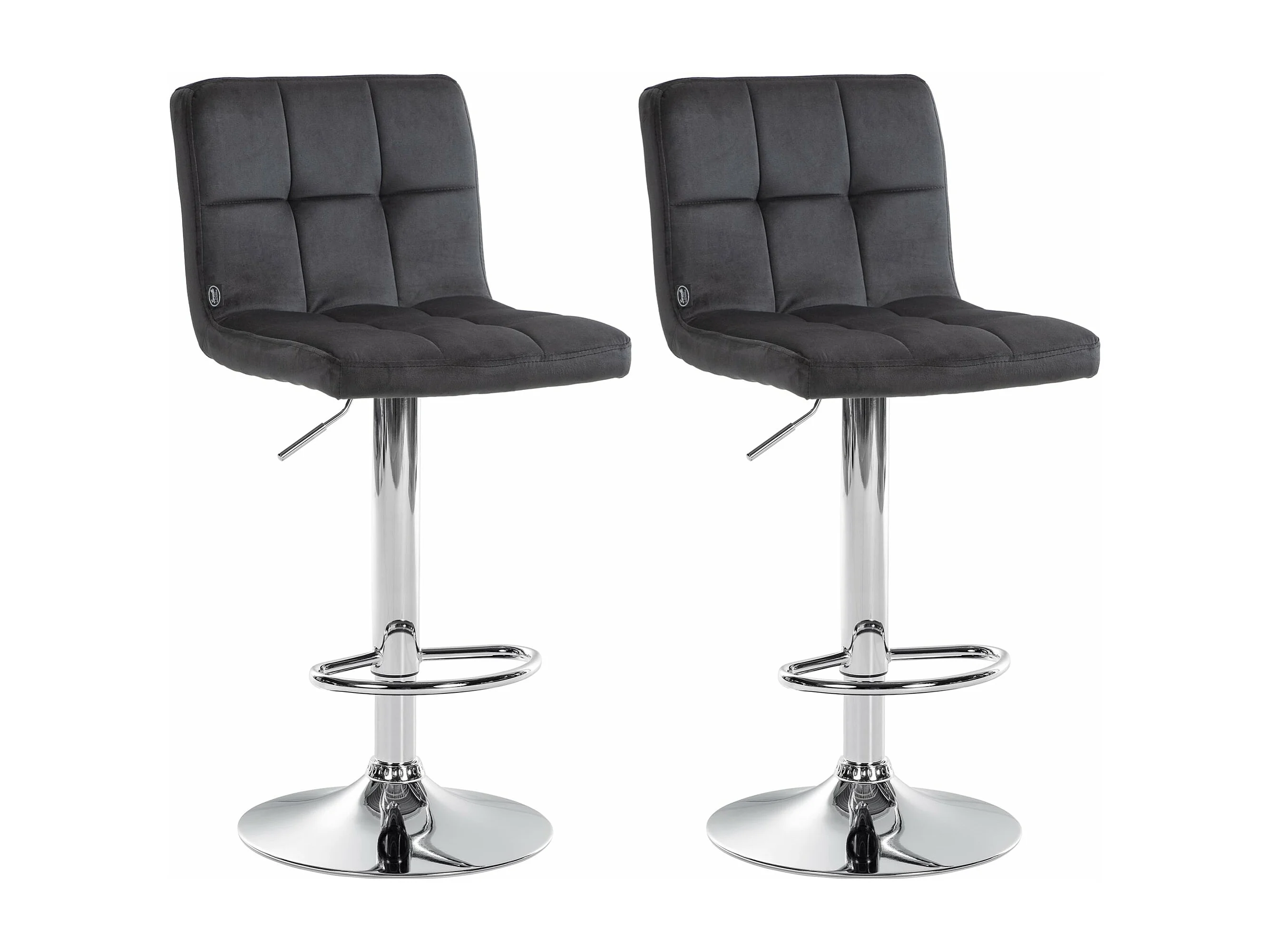 Lot de 2 Tabouret de bar - Velours & Chrome - Noir - Lex