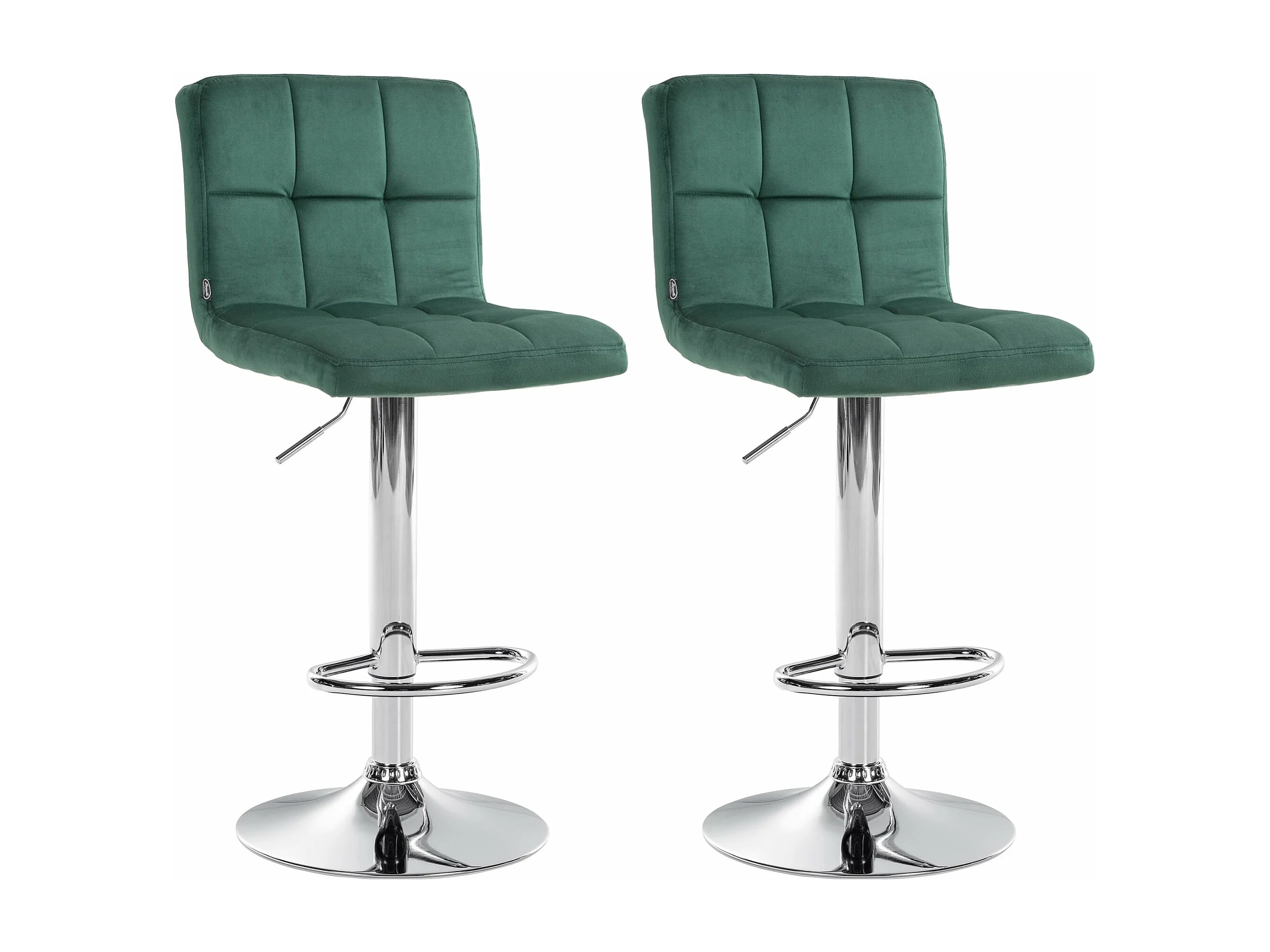 Lot de 2 Tabouret de bar - Velours & Chrome - Vert - Peru