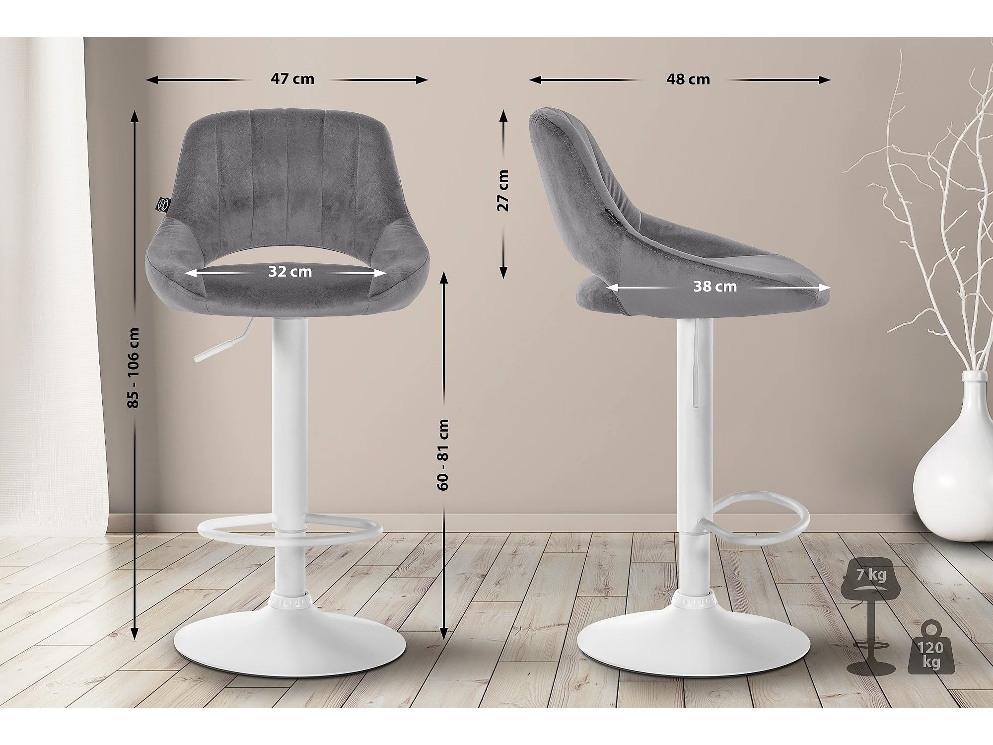 Lot de 2 Tabouret de bar - Velours - Gris foncé - Milet