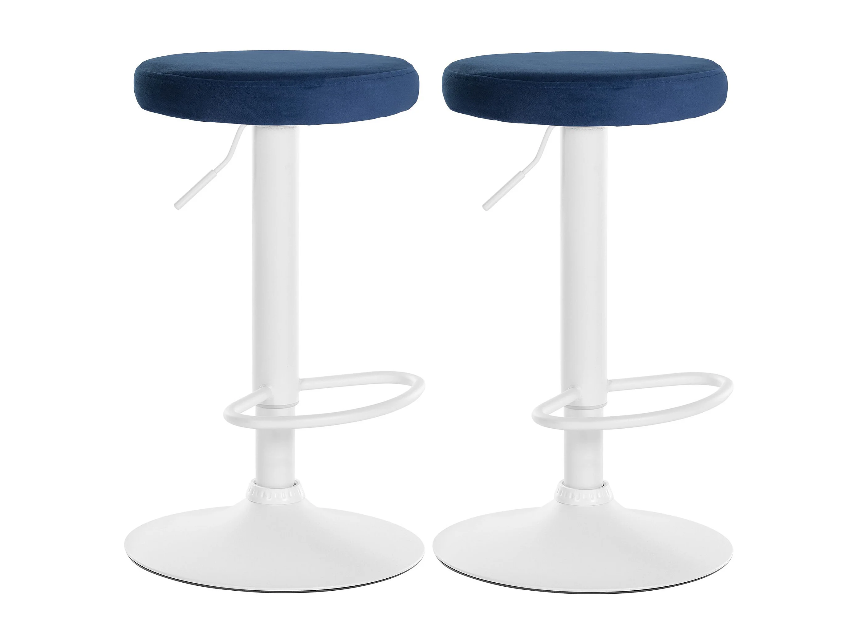 Lot de 2 Tabouret de bar - Velours & Métal blanc mat - Bleu - Ponte