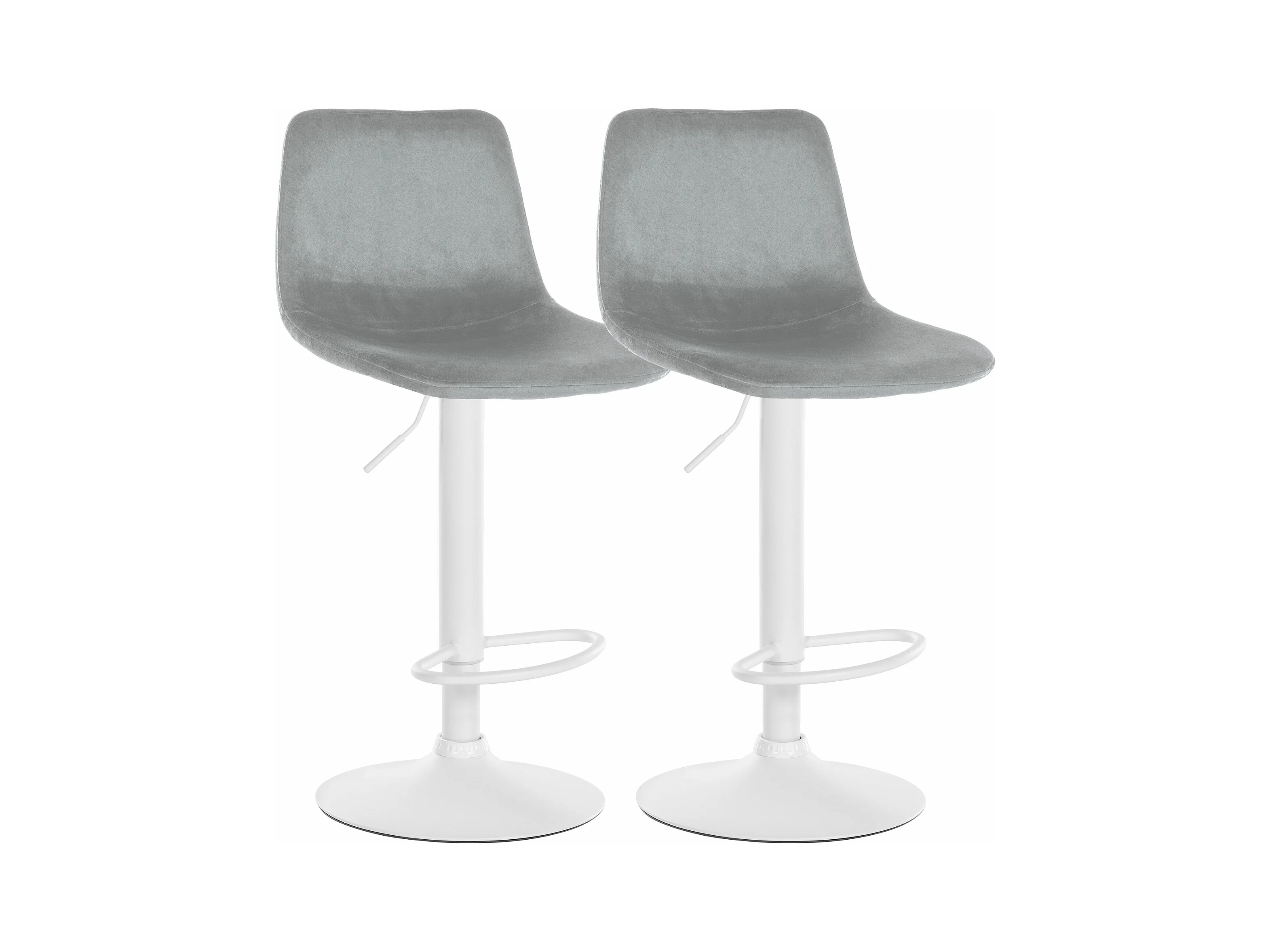 Lot de 2 Tabouret de bar - Velours & Métal blanc mat - Gris - Divo