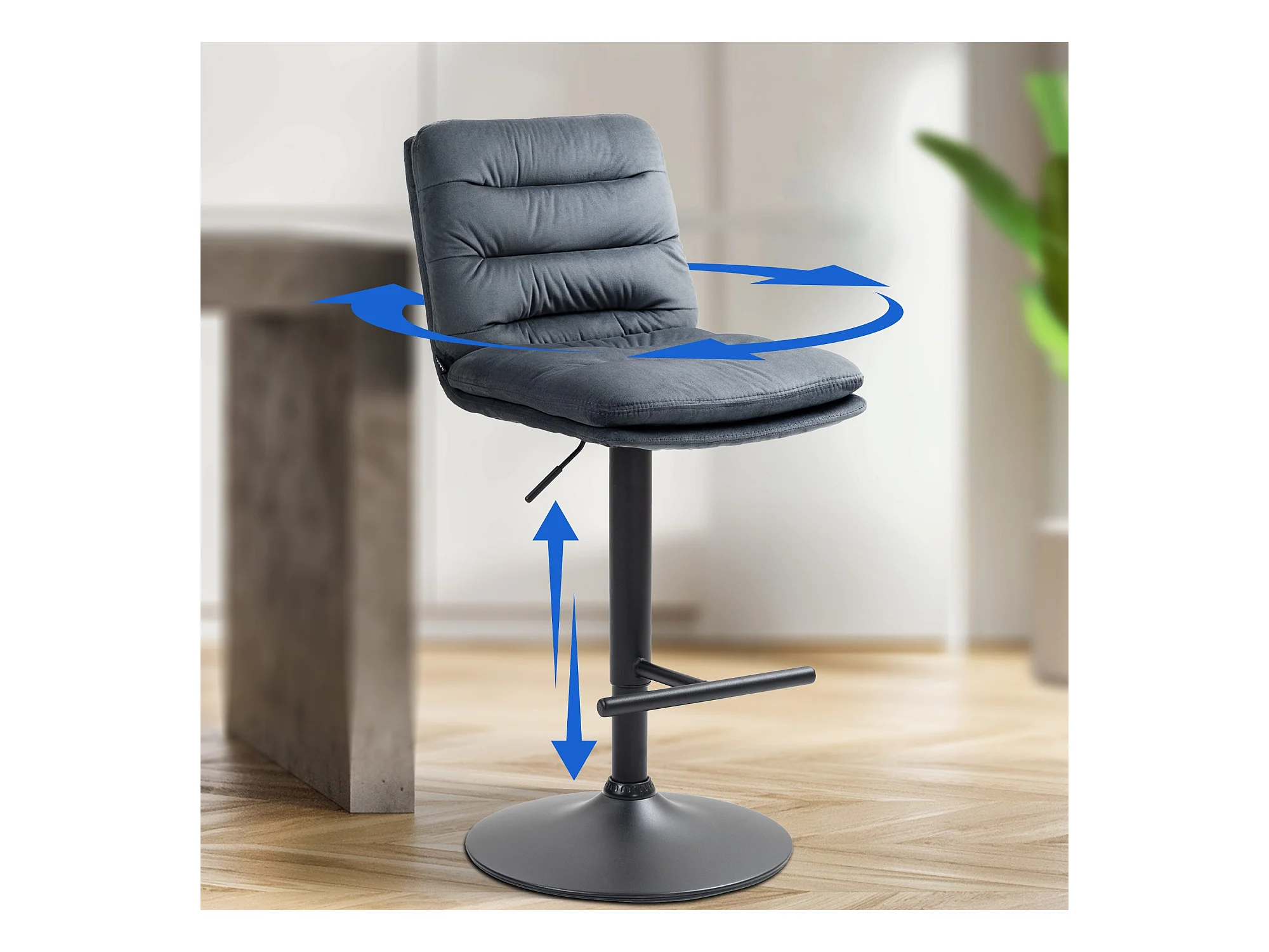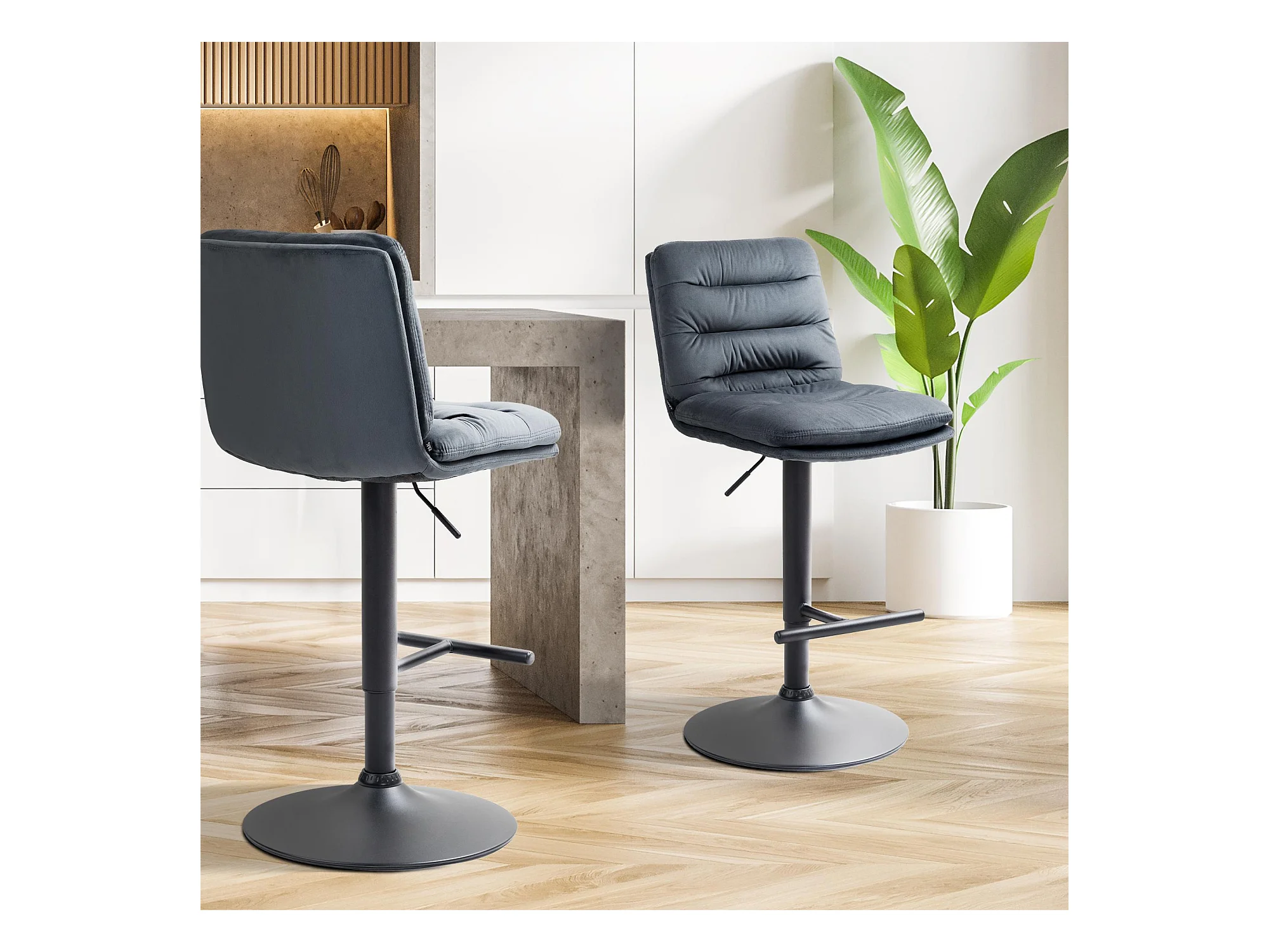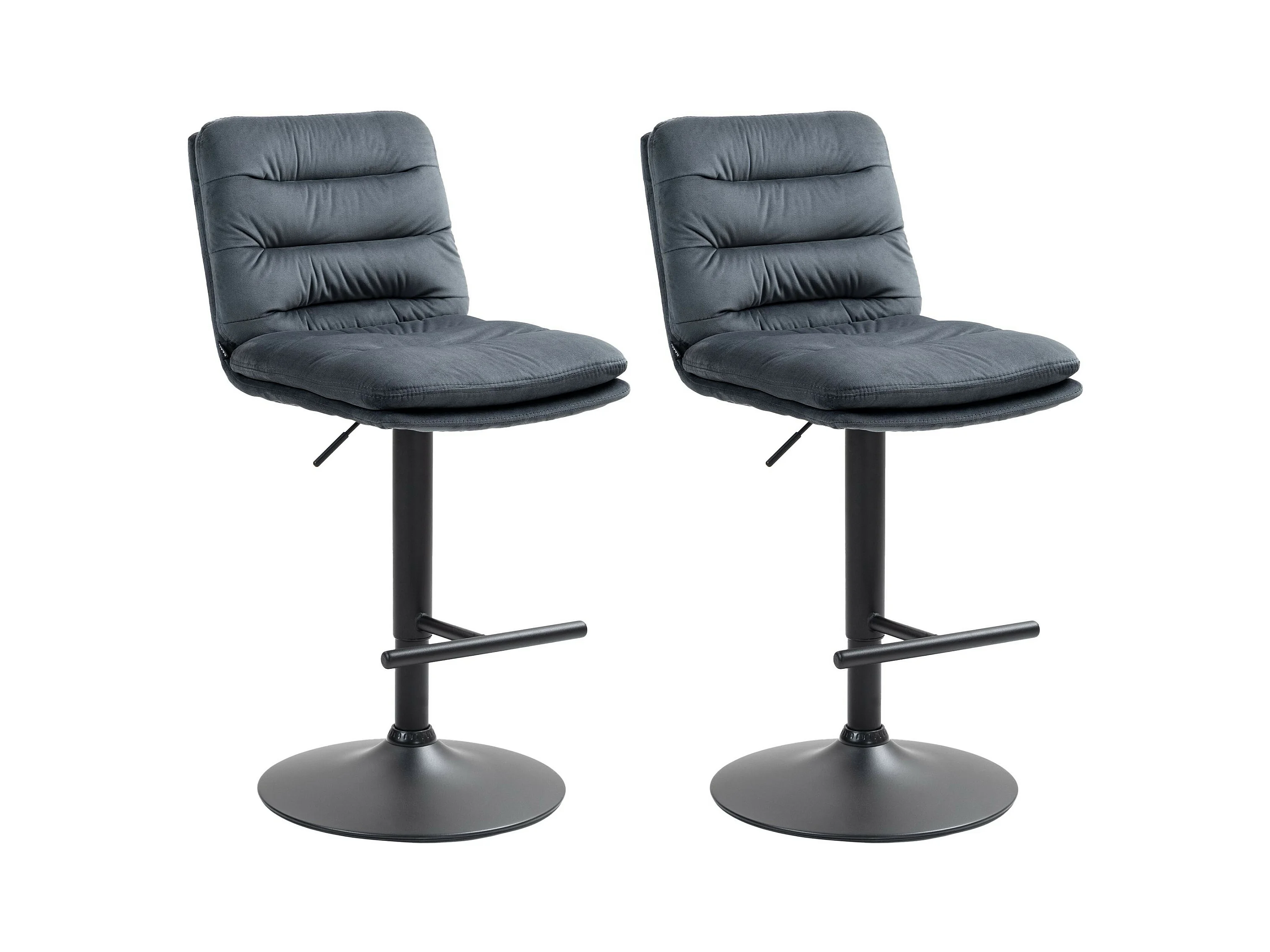 Lot de 2 Tabouret de bar - Velours & Noir - Gris foncé - Damar