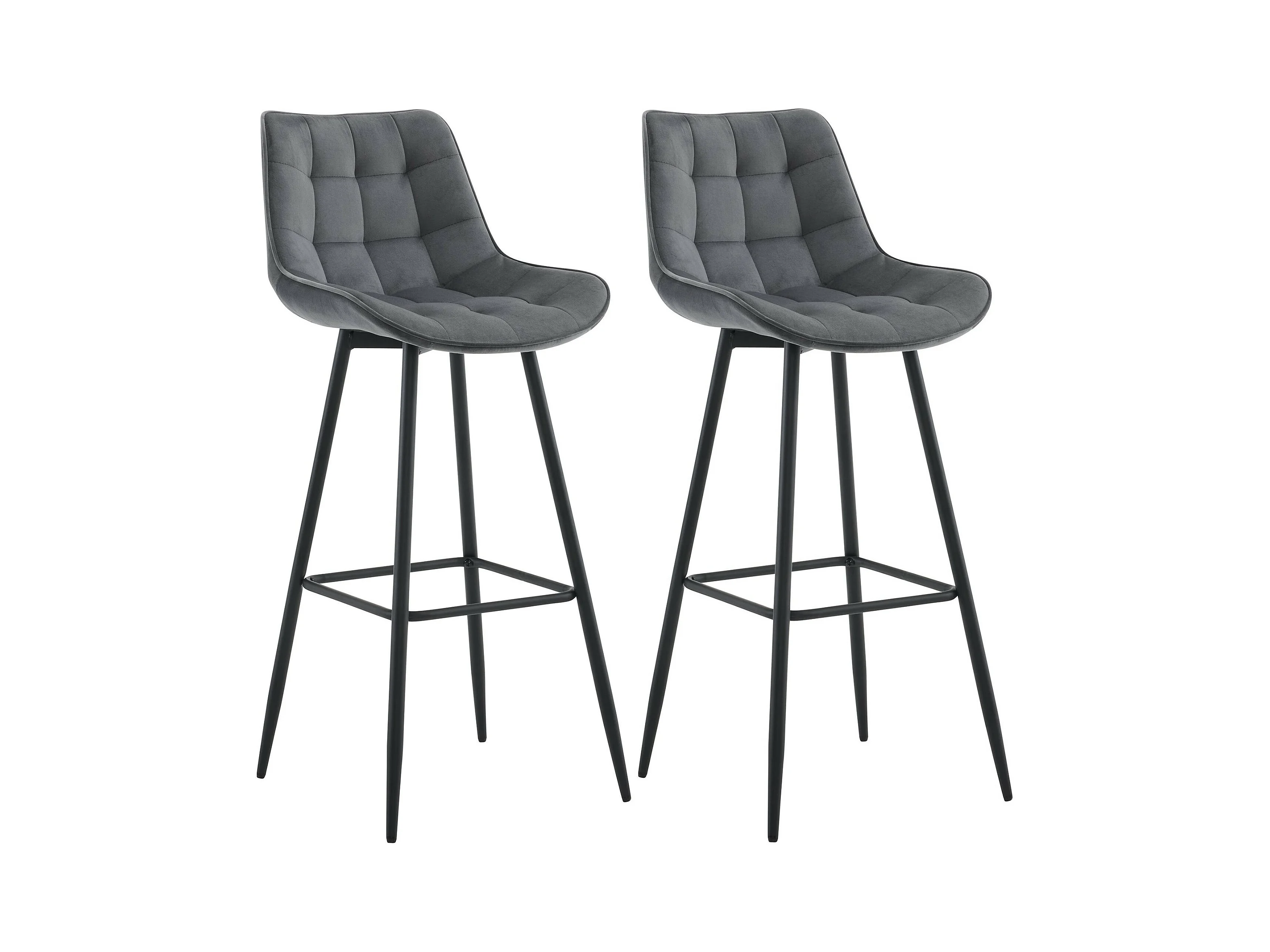 Lot de 2 Tabouret de bar - Velours - Gris foncé - Milet