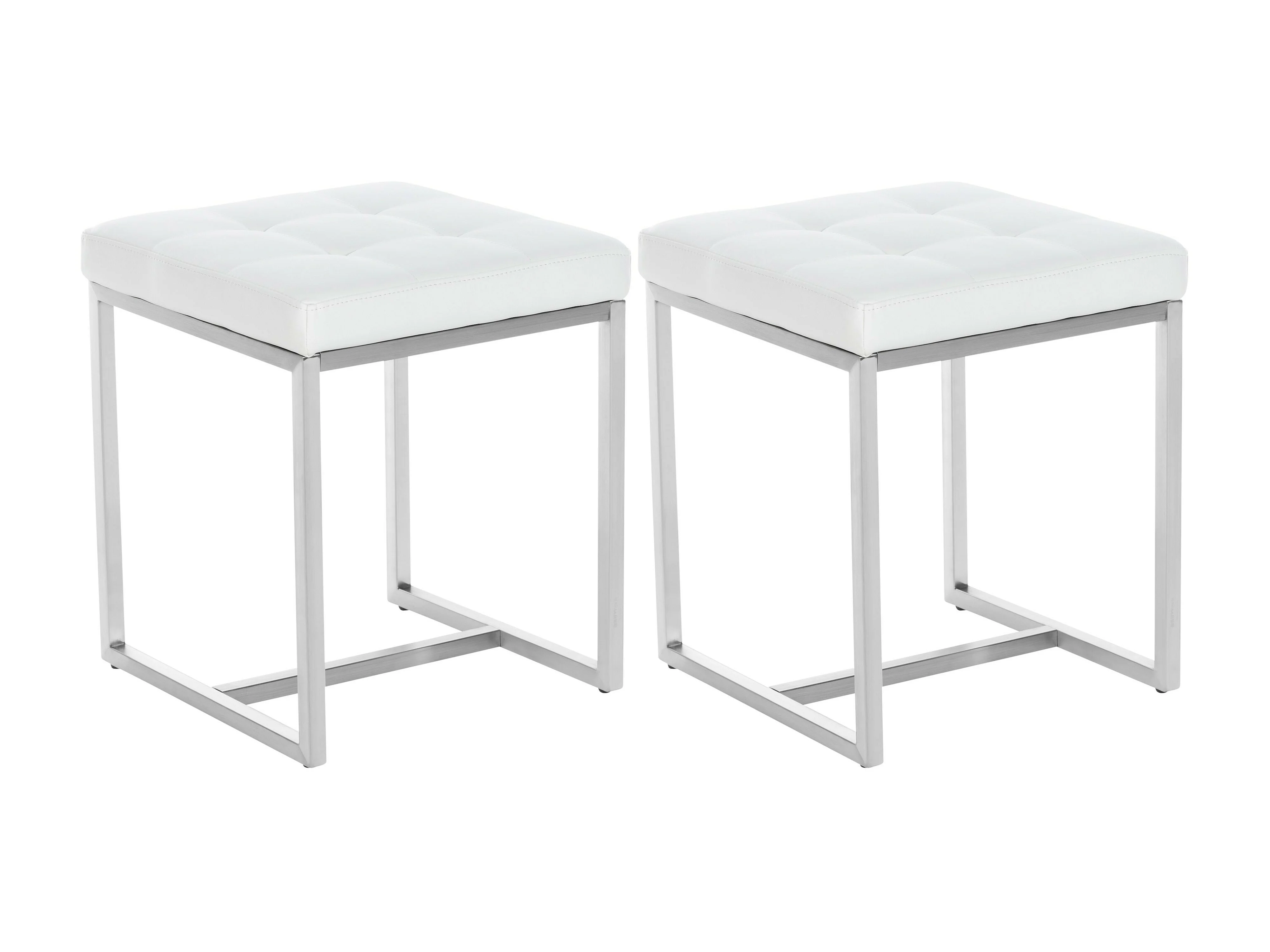 Lot de 2 Tabouret - Similicuir & Acier inoxydable - Blanc - Barci