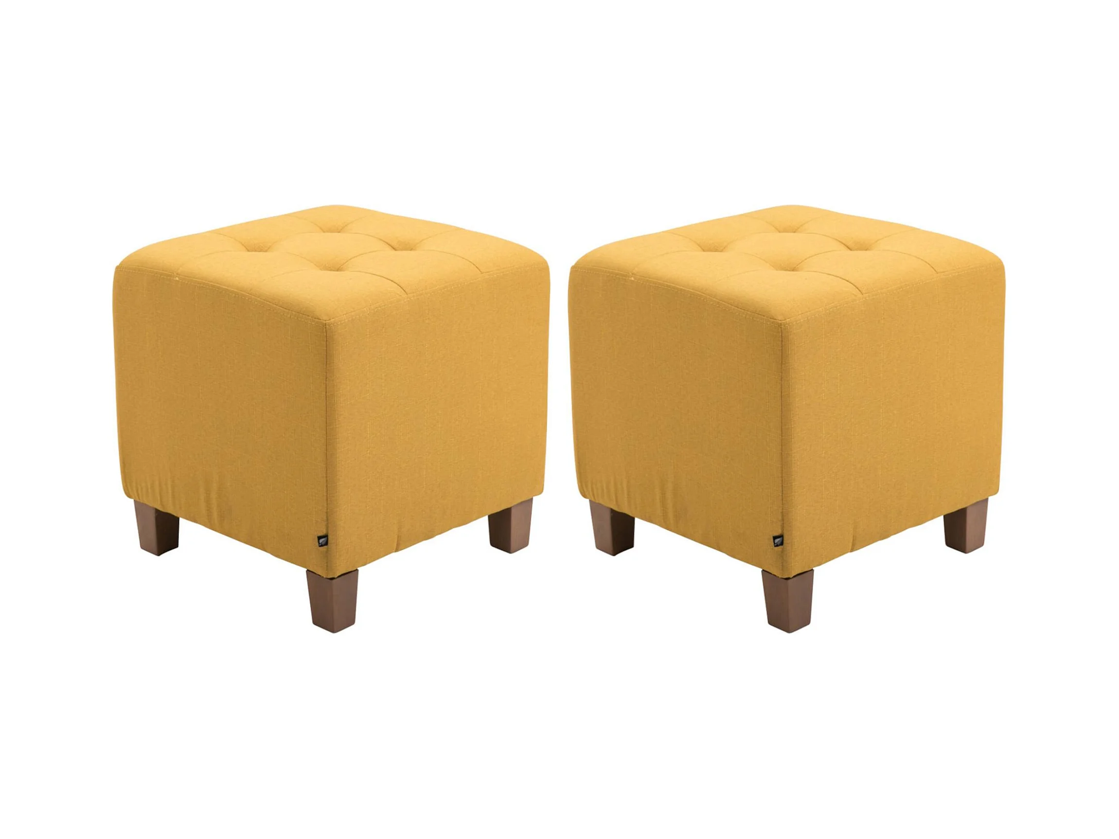 Lot de 2 Tabouret - Tissu & Bois - Jaune - Pharao