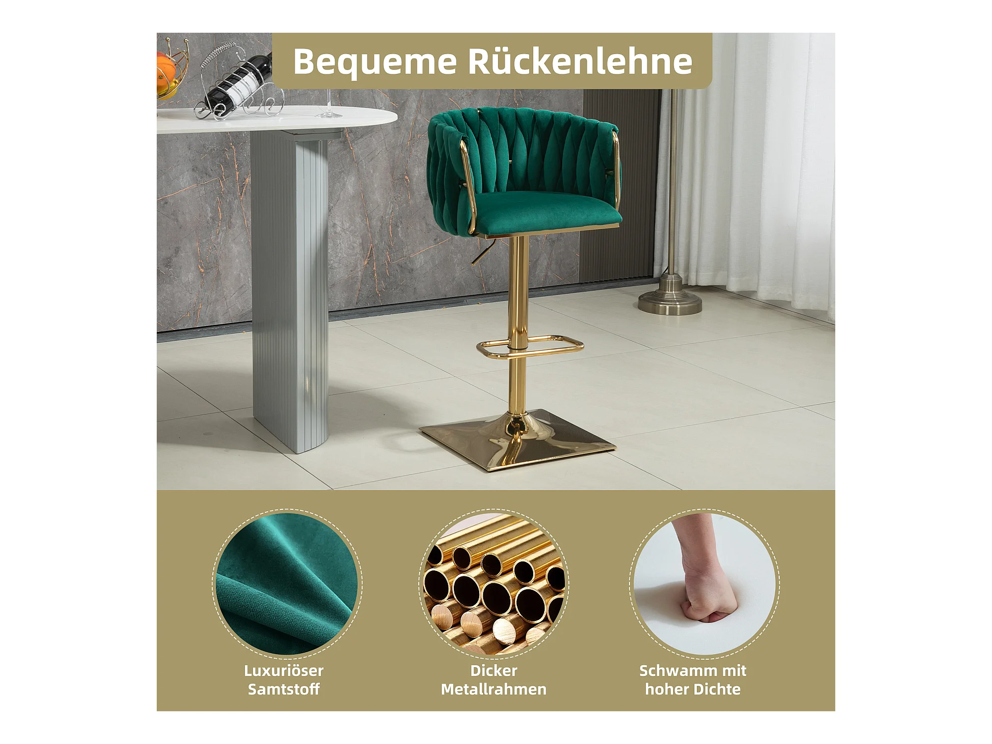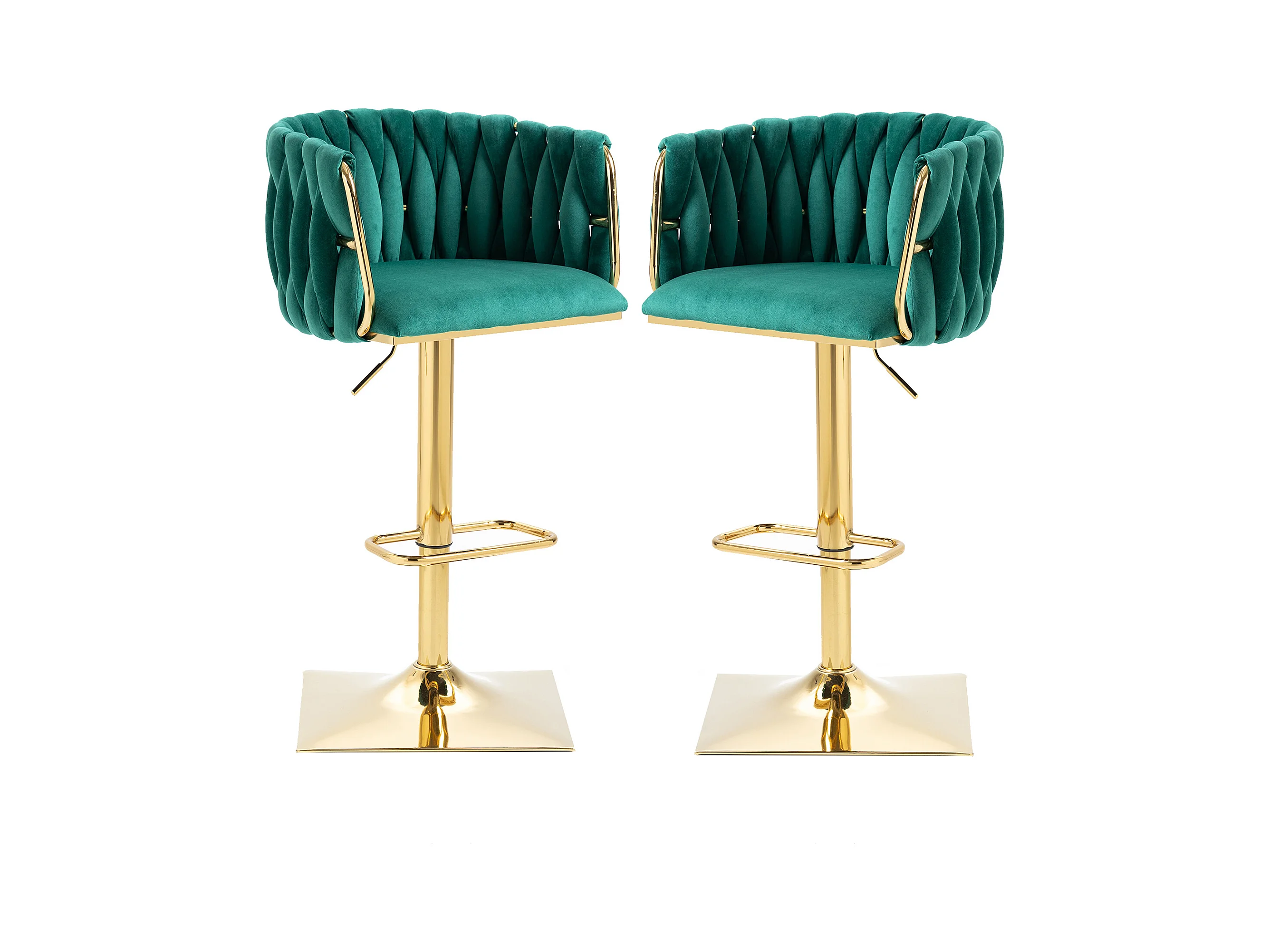 Lot de 2 tabourets de bar avec dossier et repose-pieds - 53 x 51 x 87/105 - hauteur réglable - velours - vert