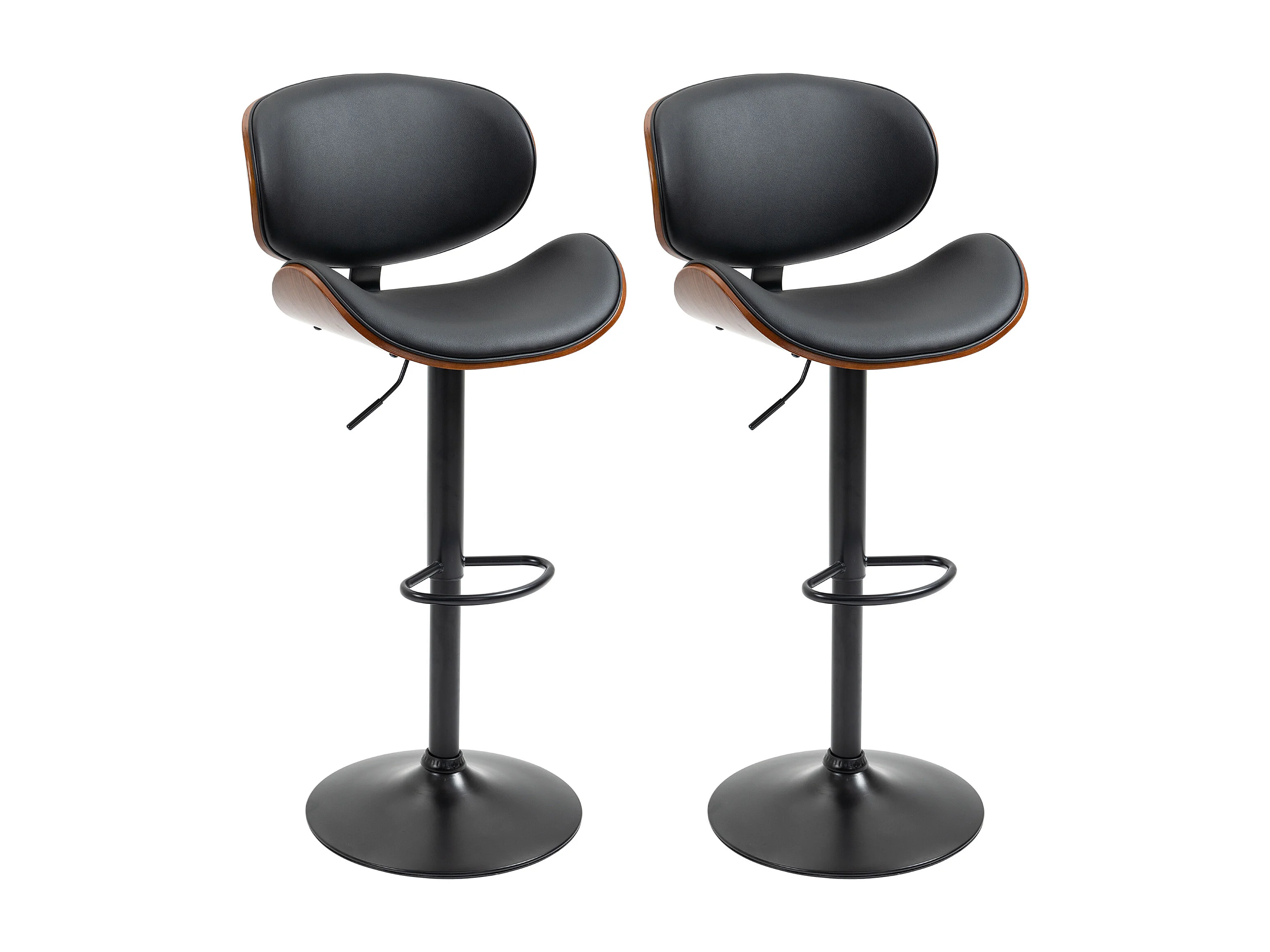 Lot de 2 tabourets de bar design contemporain hauteur d'assise réglable 62-82 cm pivotant 360° bois revêtement synthétique noir