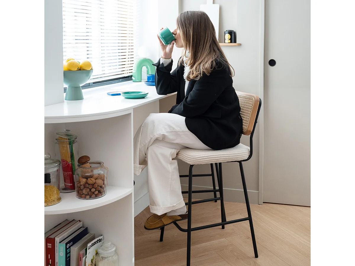 Lot de 2 chaises de bar en cannage et velours côtelé beige, piètement noir - Muse