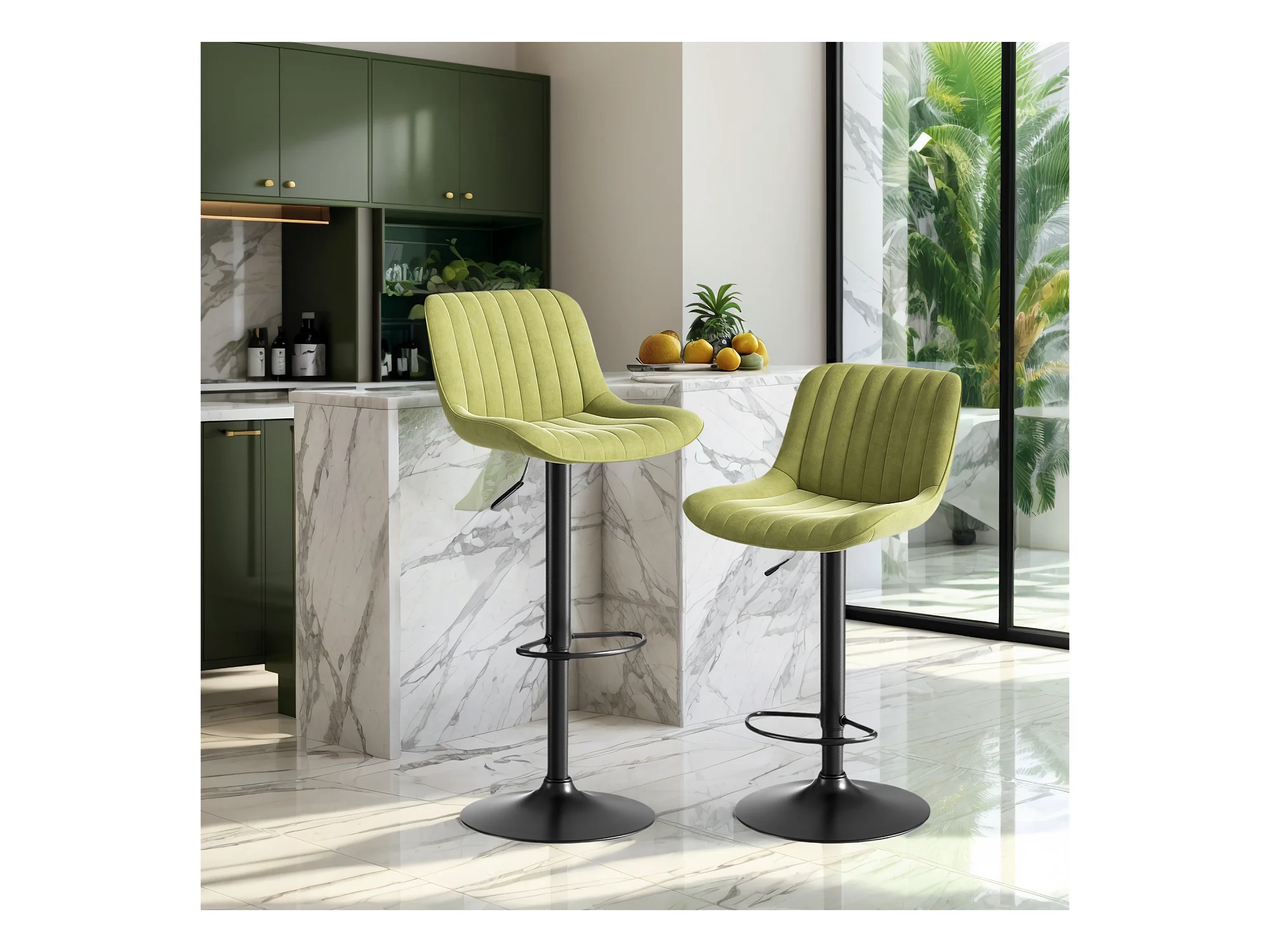 Lot de 2 tabourets de bar en velours vert, pivotants et réglables en hauteur