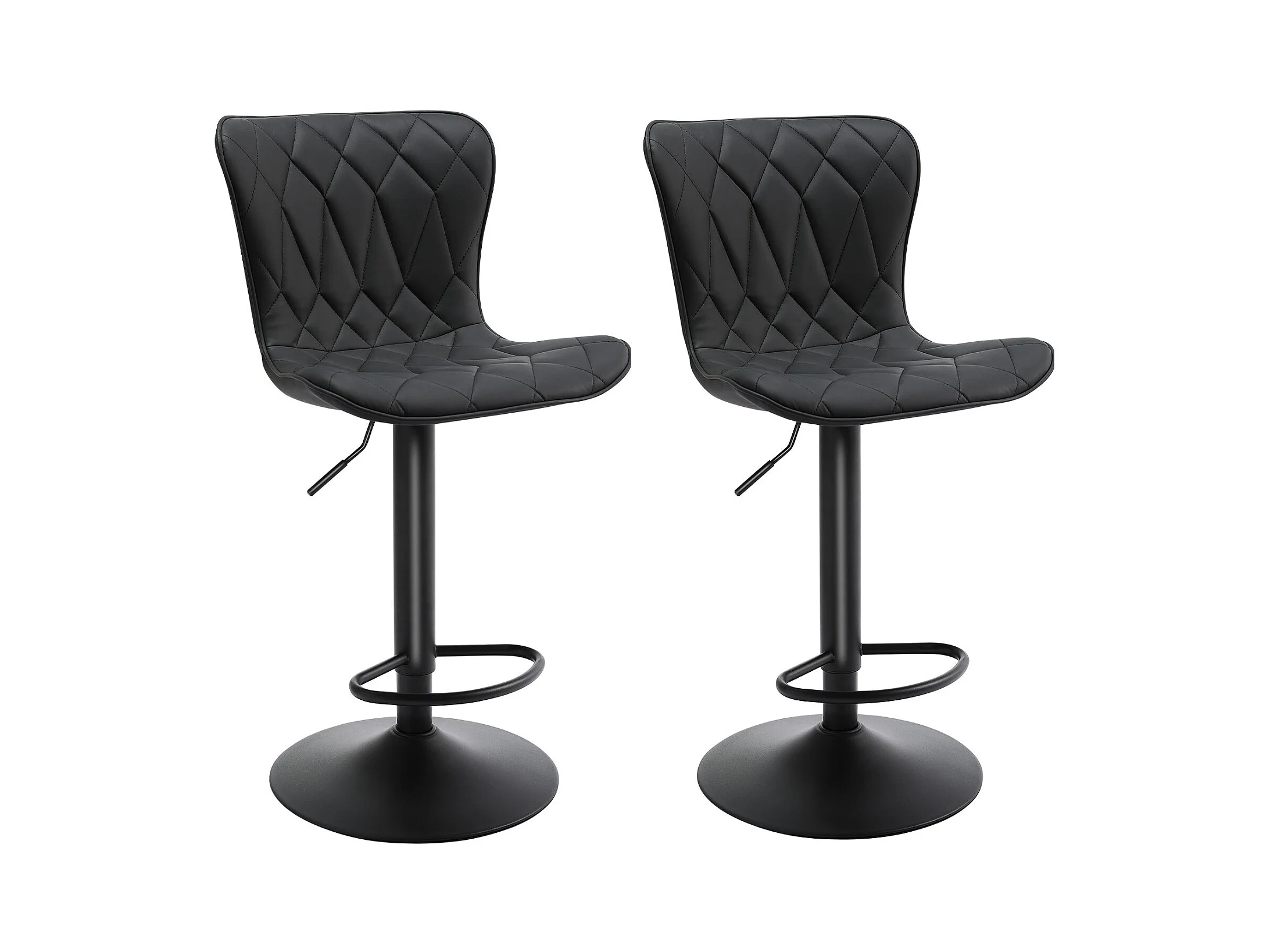 Lot de 2 Tabourets de bar HomeMiYN- Hauteur réglable, 360° rotatif en cuir diamanté, noir