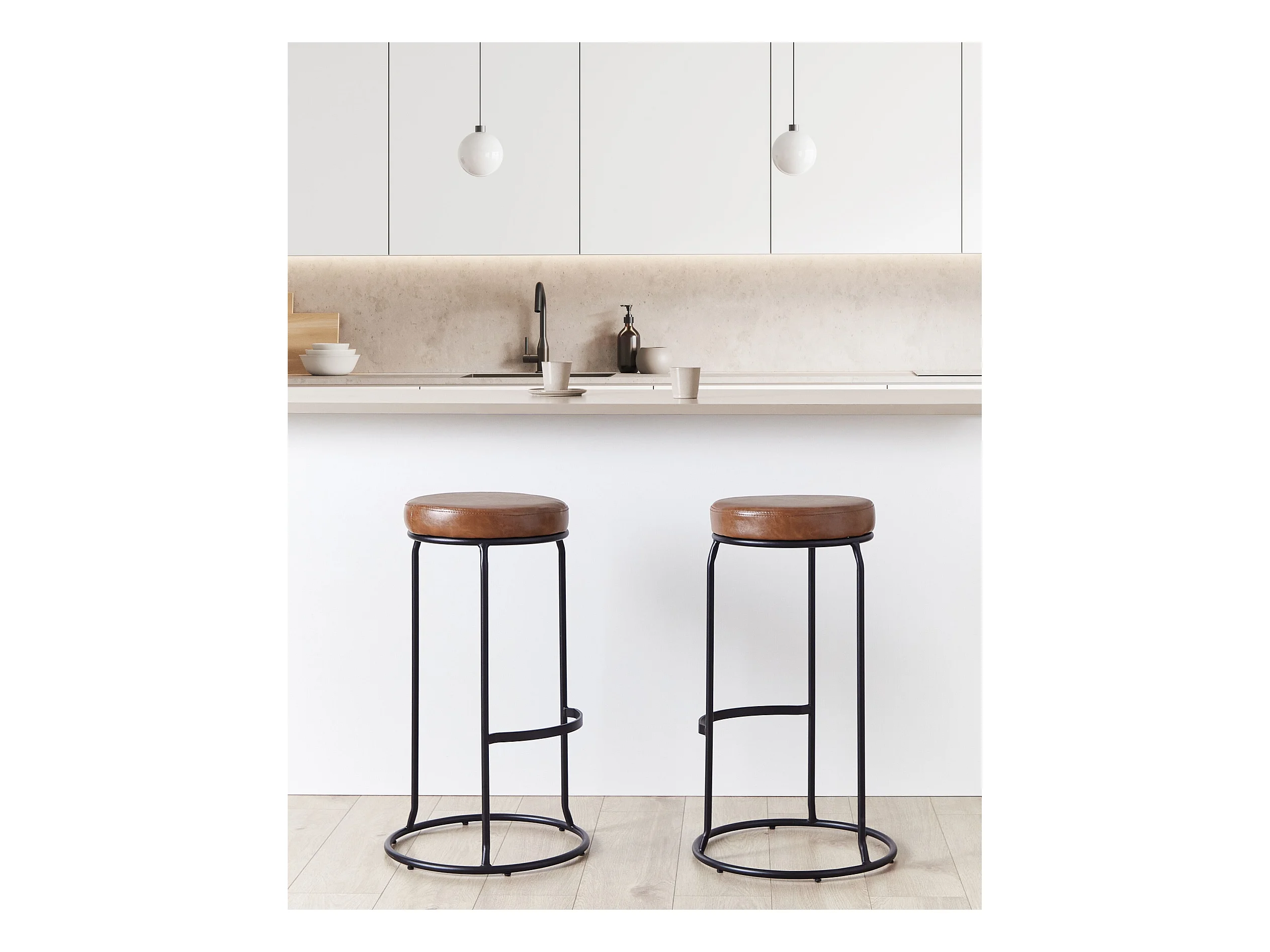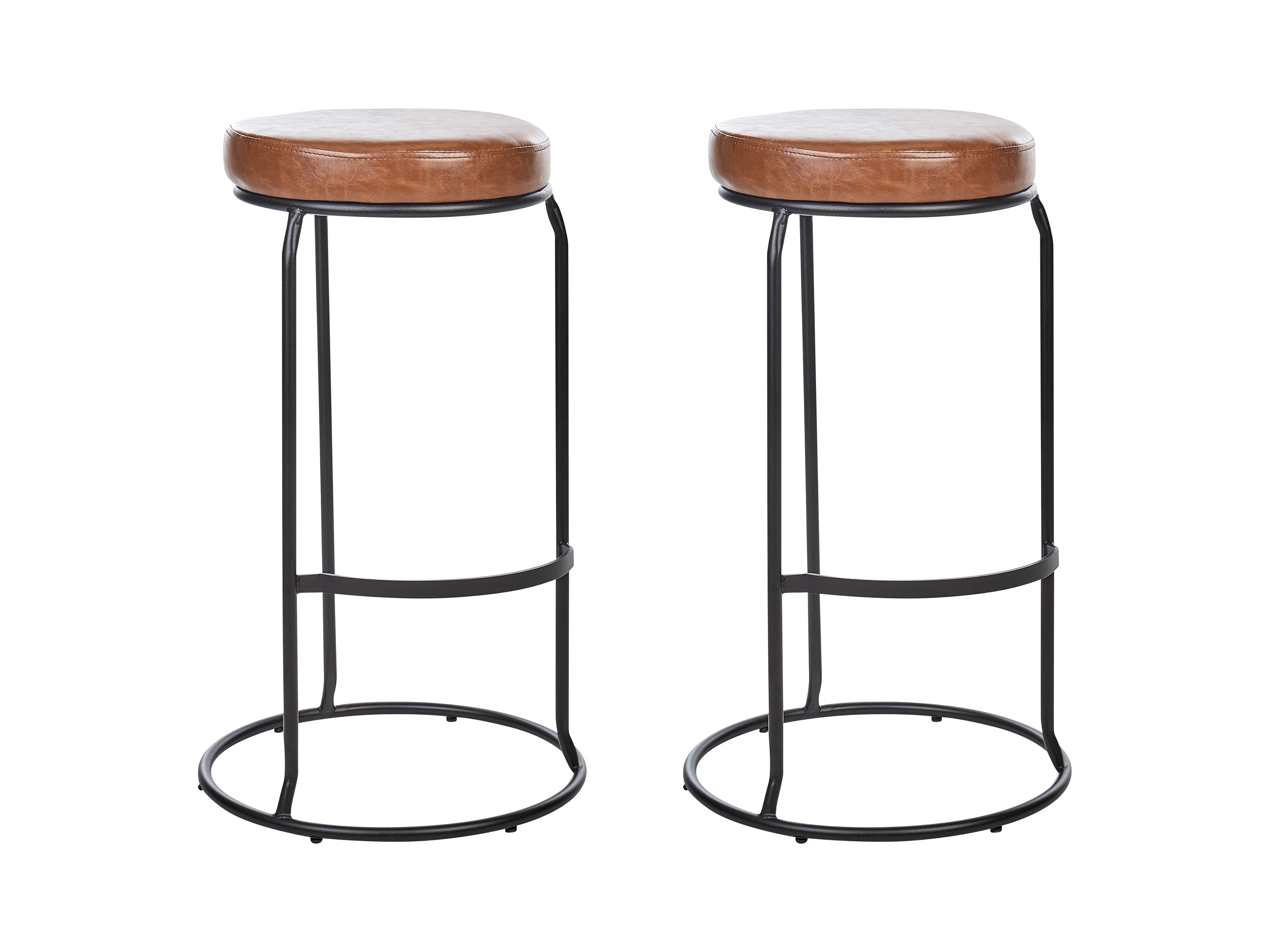Lot de 2 tabourets de bar en simili marron FERNAND - HAPPY GARDEN