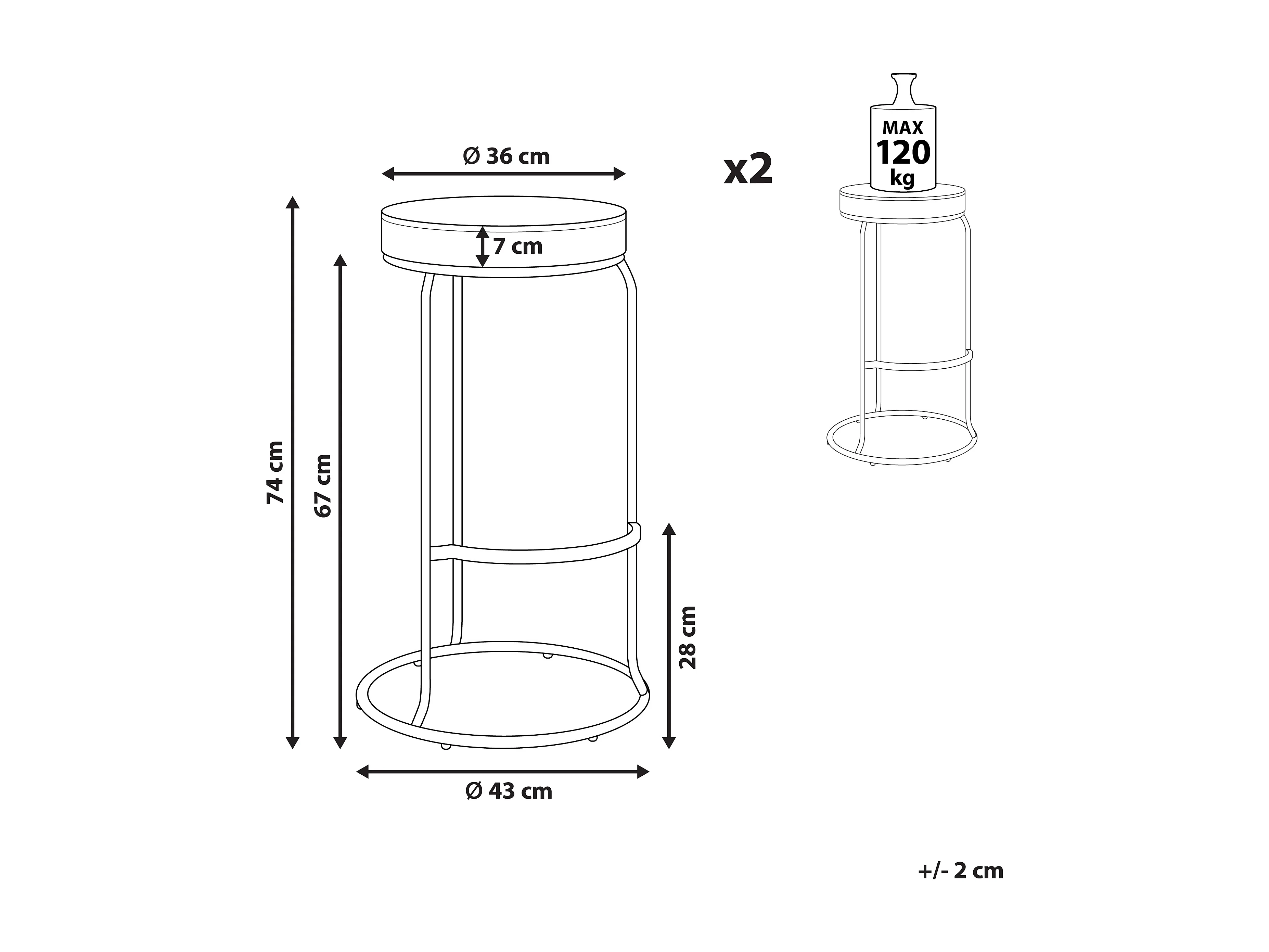 Lot de 2 tabourets de bar MILROY Cuir PU Marron