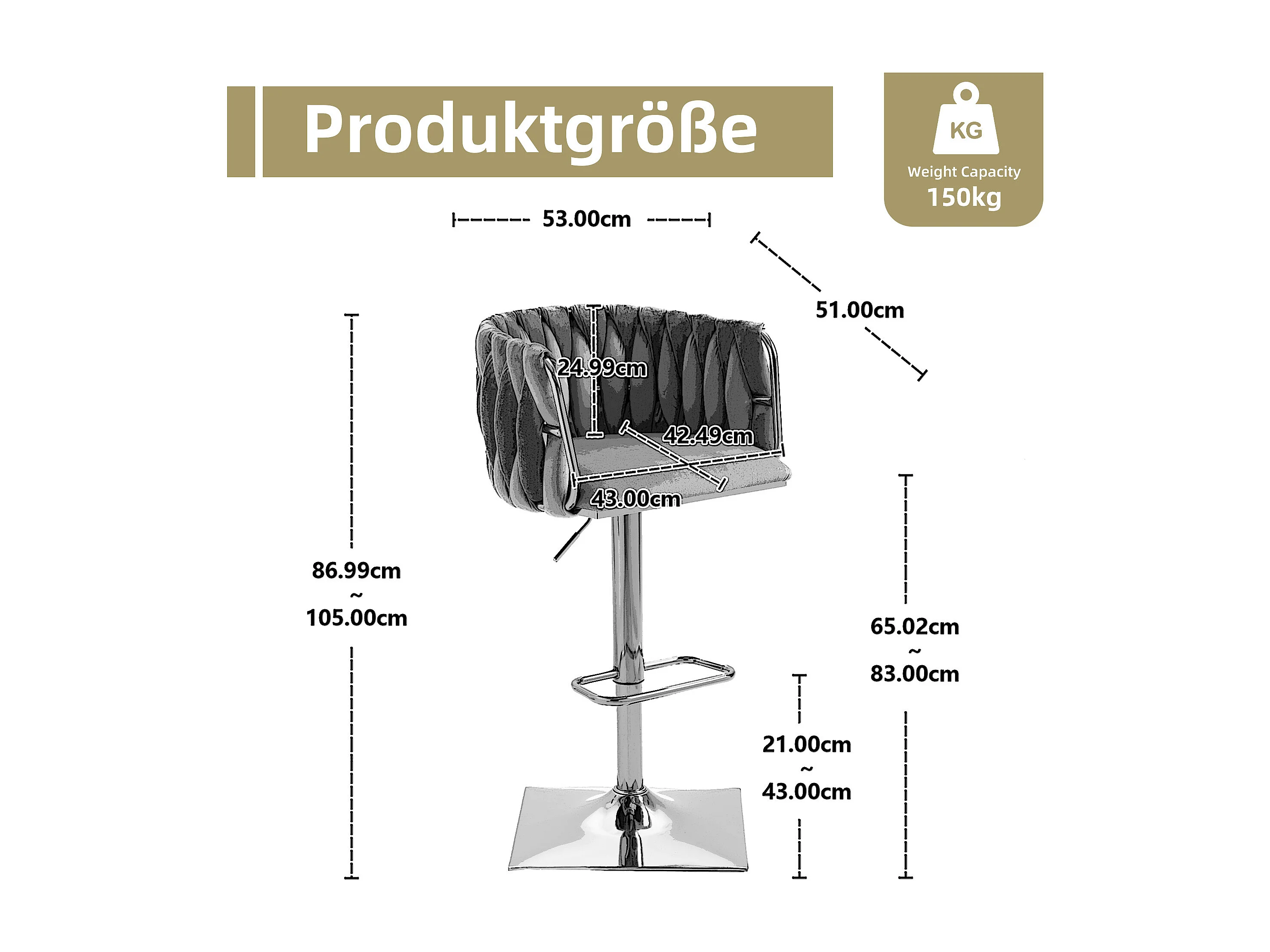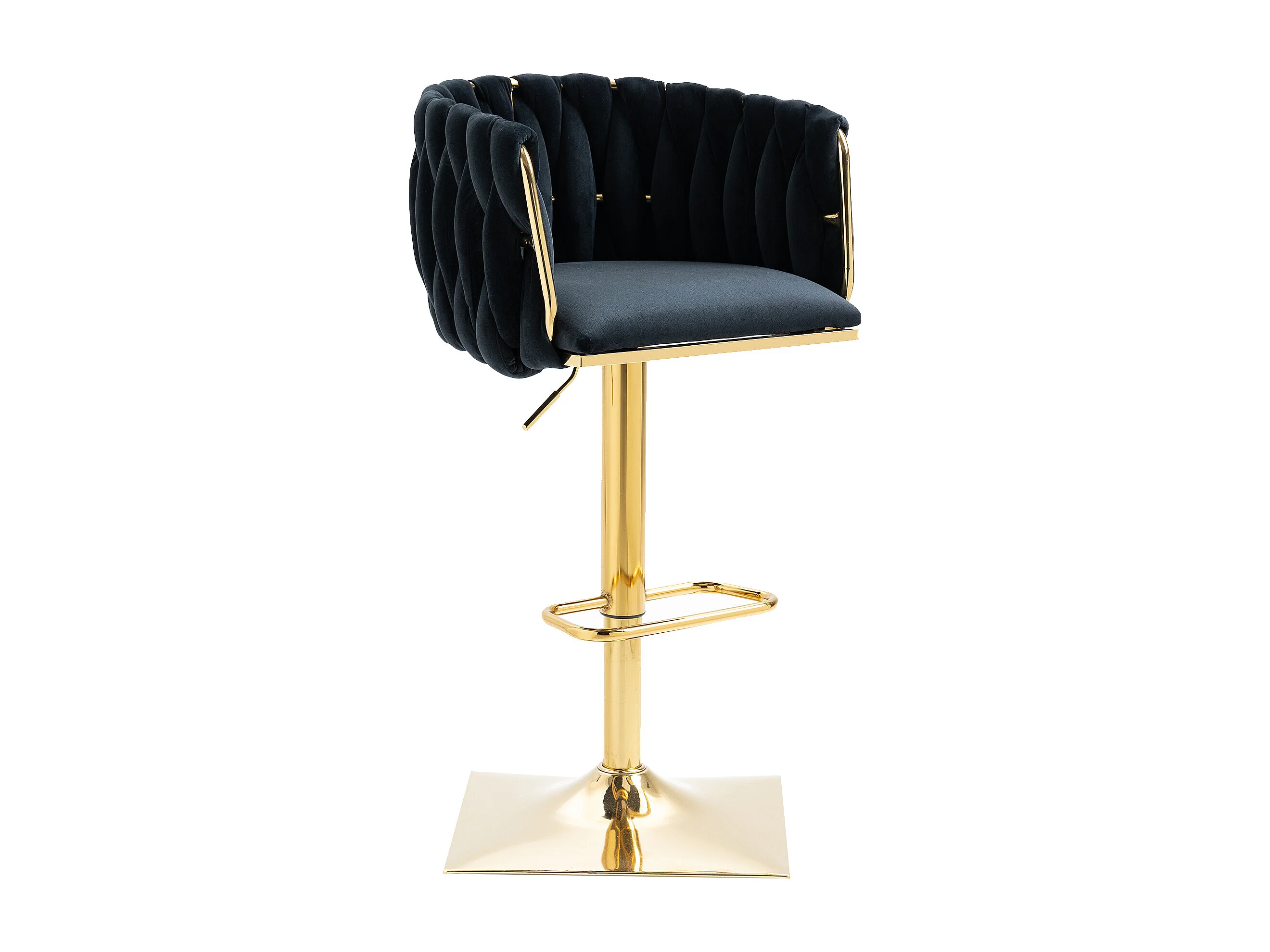 Lot de 2 tabourets de bar, pivotante, réglable en hauteur avec dossier et repose-pieds, pied en metal, 53x51x83-105cm, noir