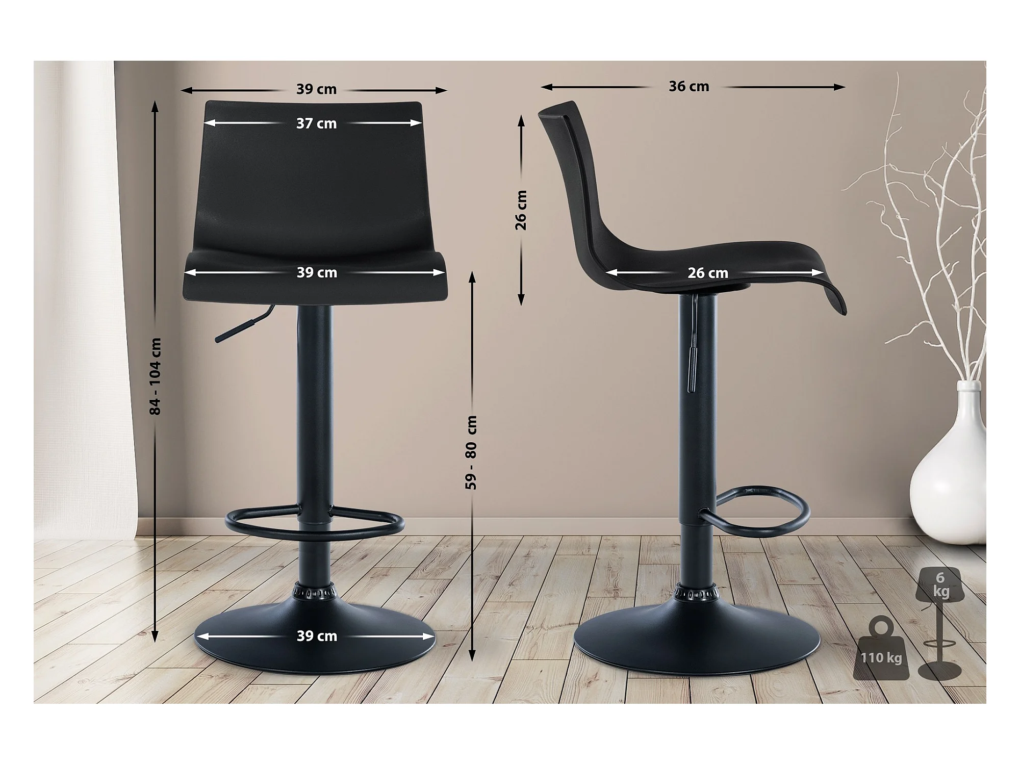 Lot de 2 Tabouret de bar - Plastique - Noir - Gilbert
