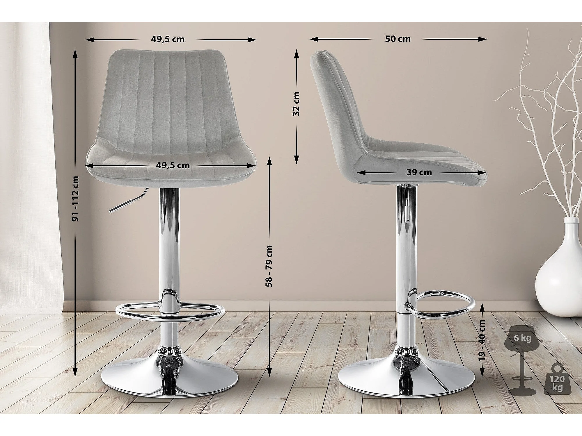 Lot de 2 tabourets métal grise 49.5 x 50 x 91 cm 10_0004427