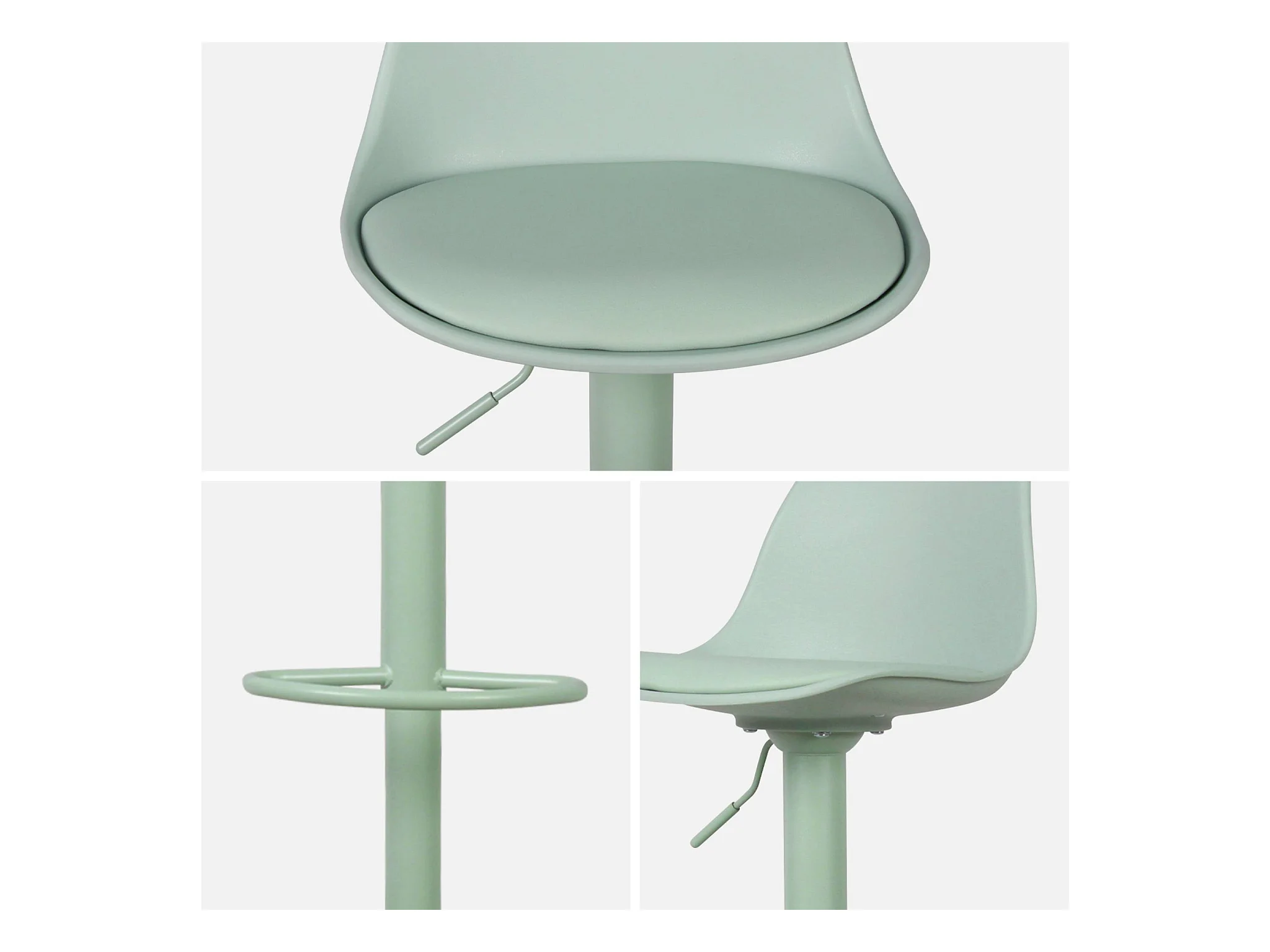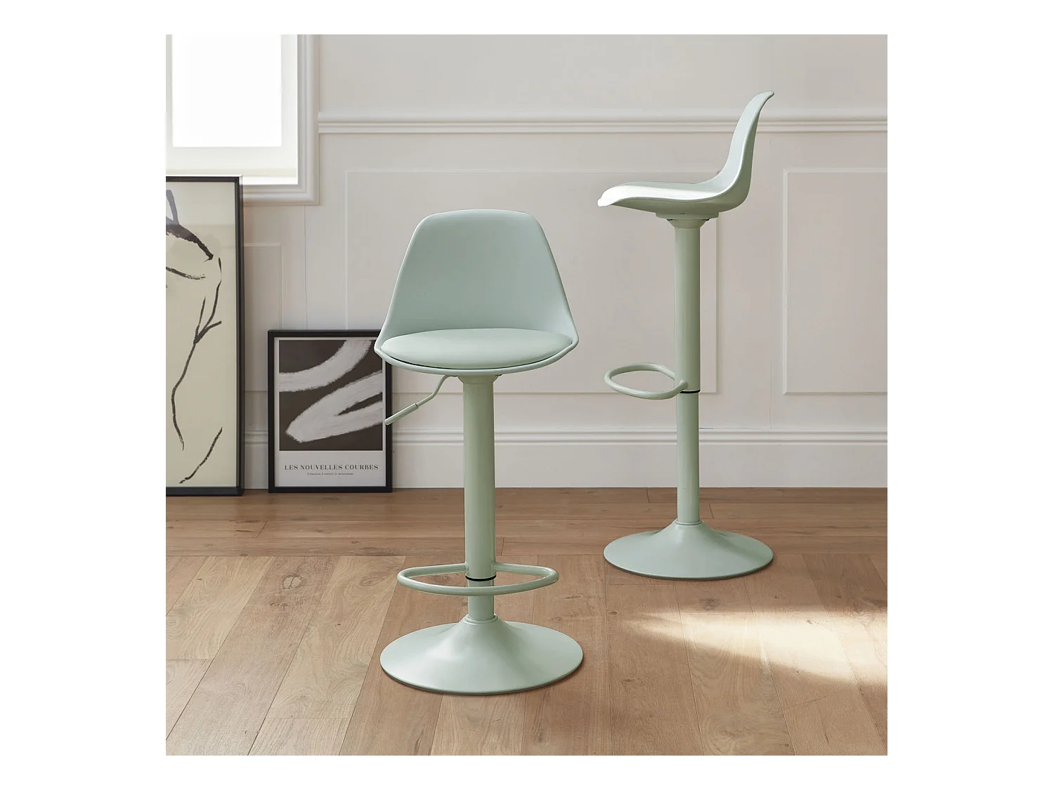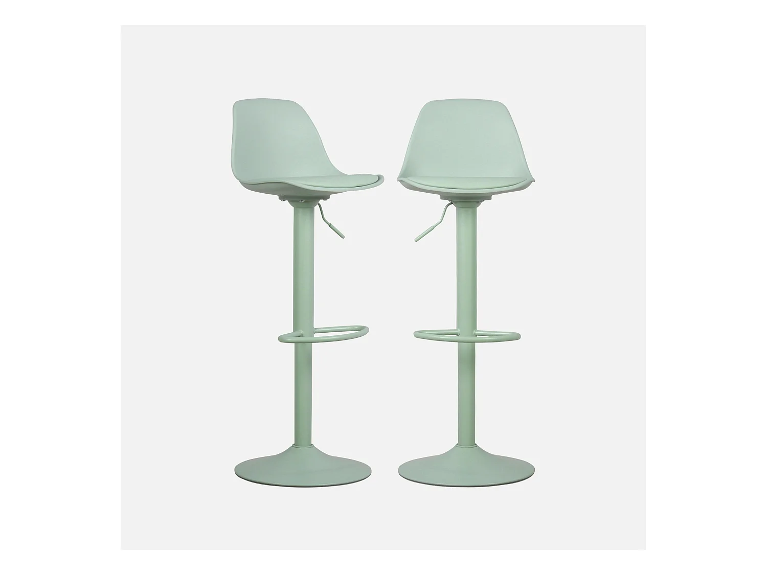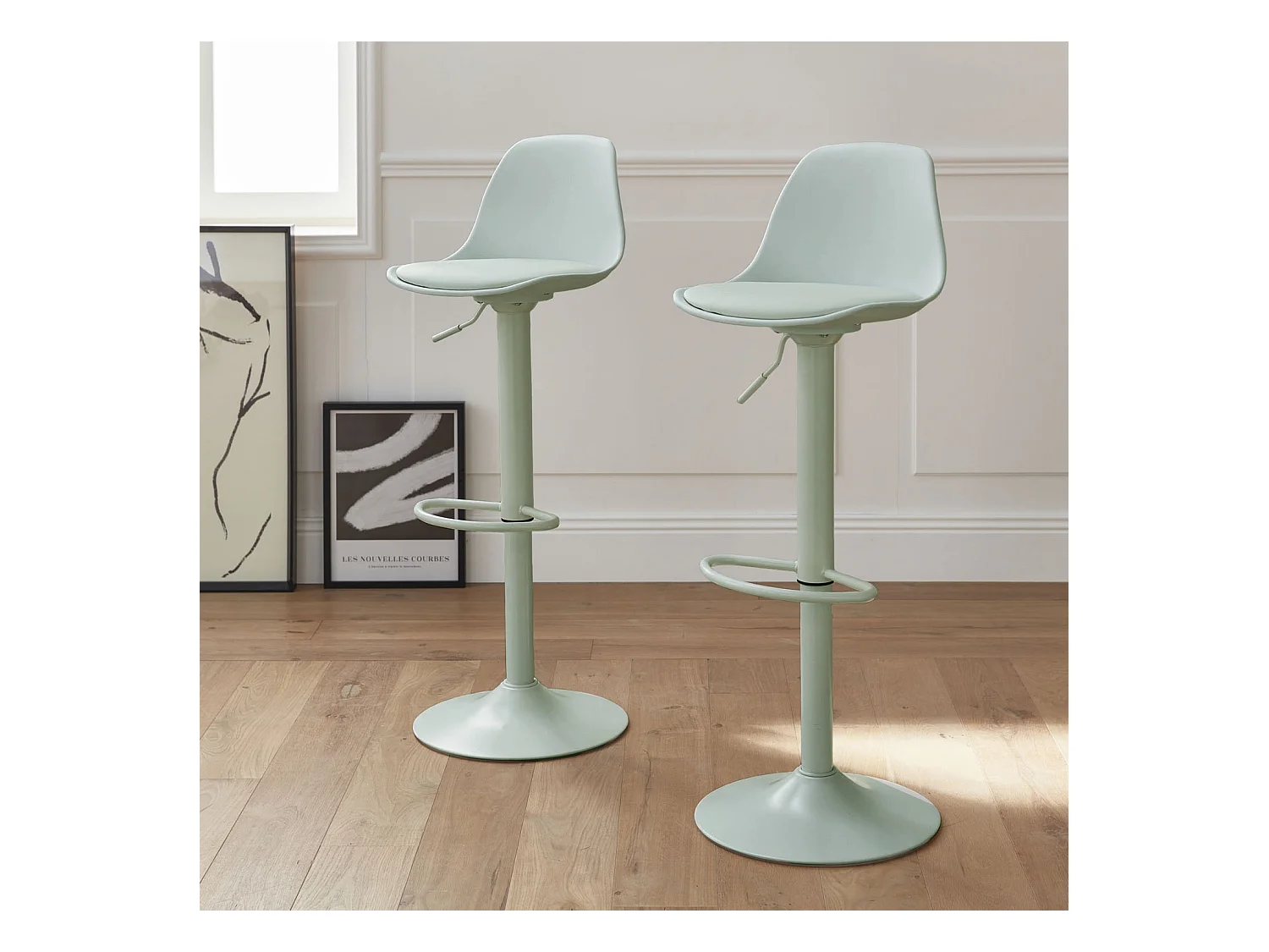 Lot de 2 tabourets de bar réglables 61.5/83.5cm - Noah - simili cuir vert céladon - hauteur réglable. repose-pieds