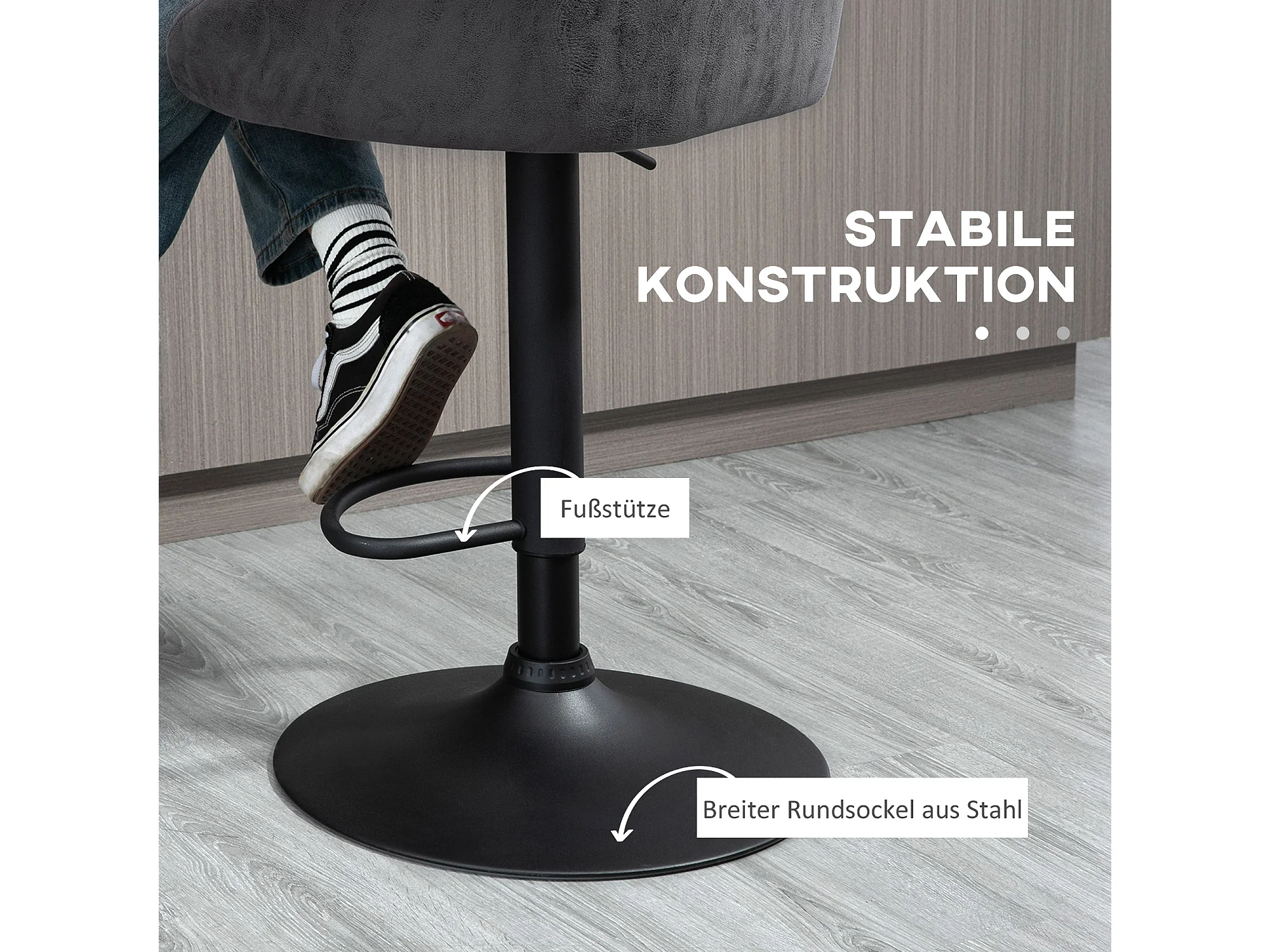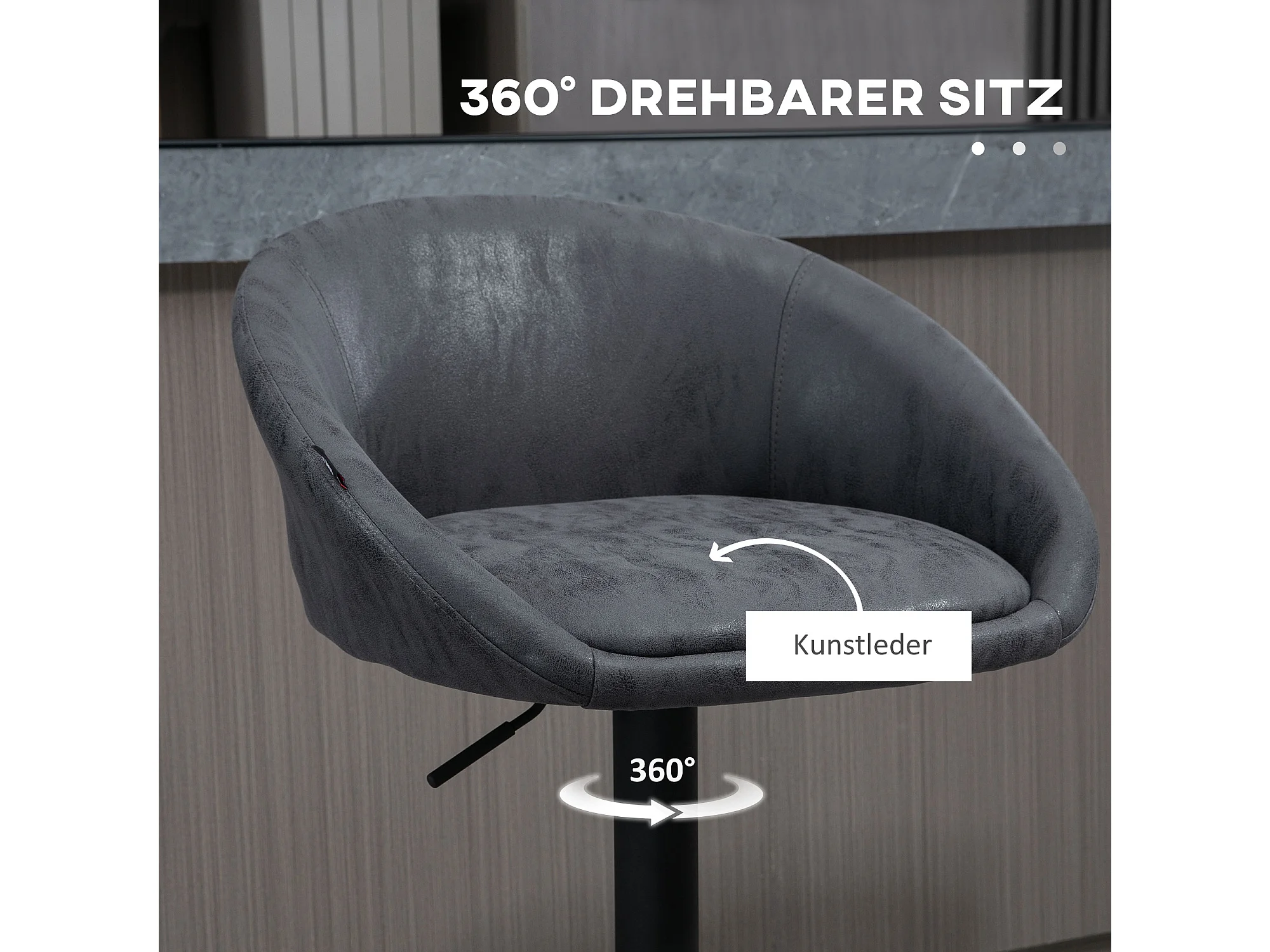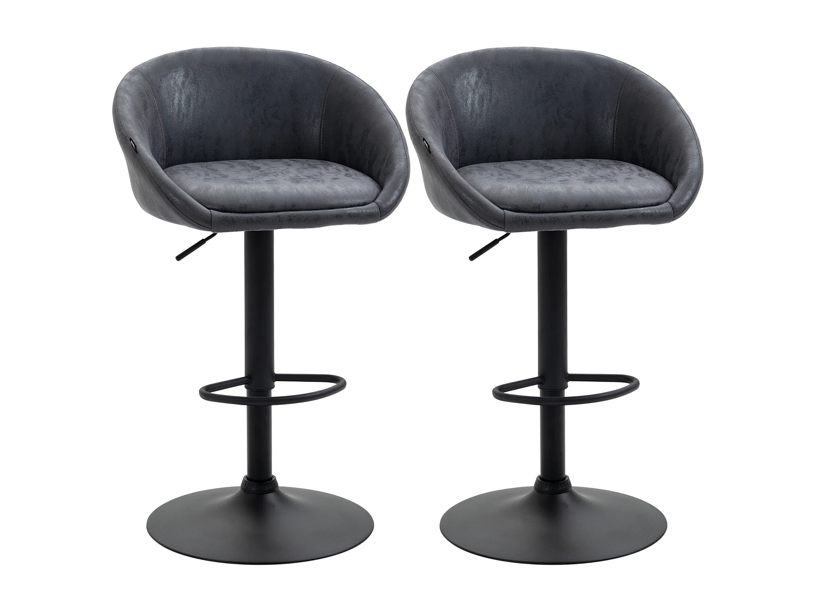 Lot de 2 tabourets de bar réglables, accoudoirs, dossier simili cuir, gris foncé, pieds métal (57x50x84-104cm)