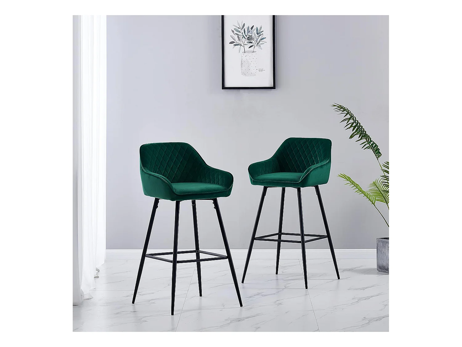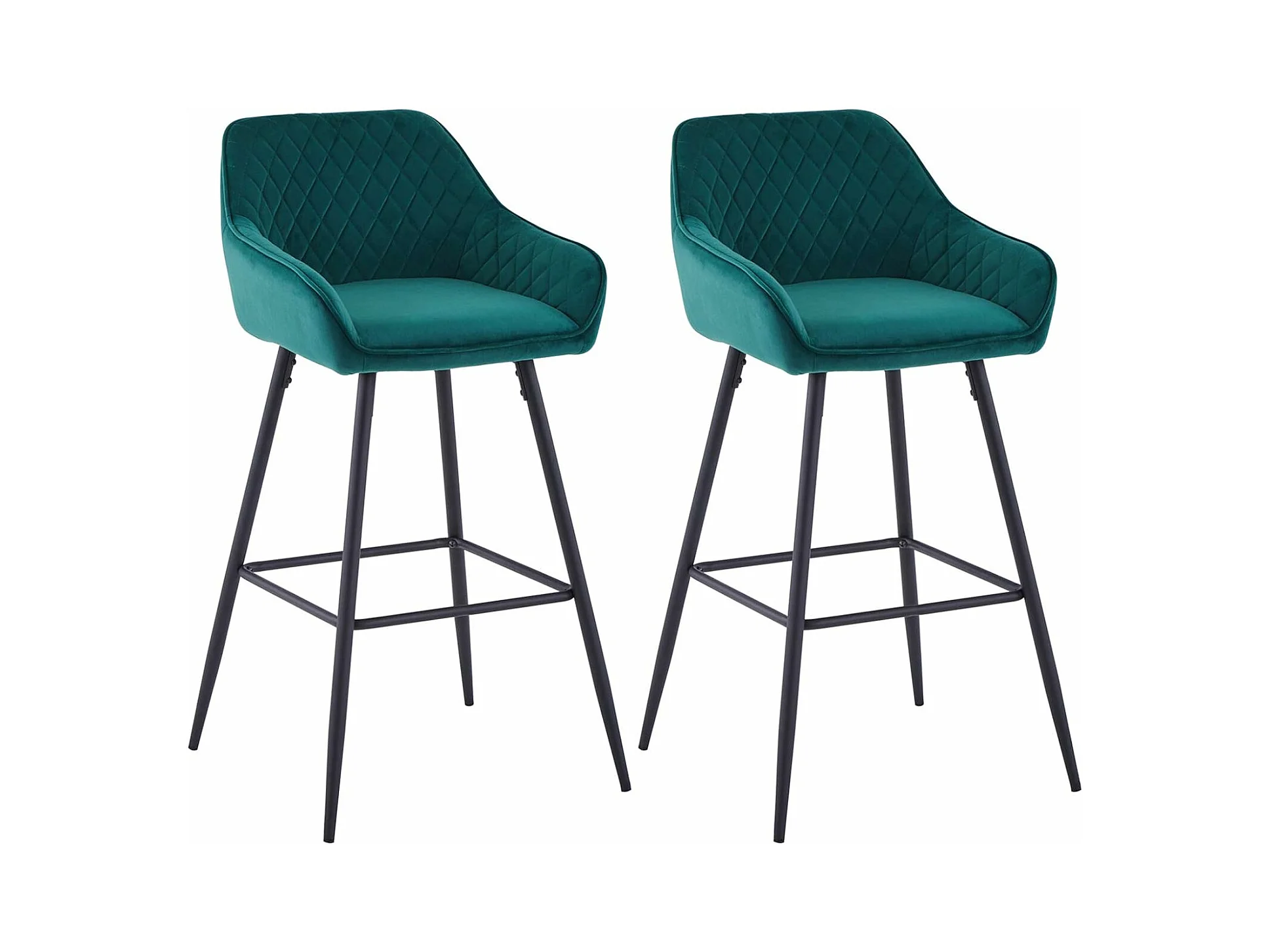 Lot de 2 tabourets de bar, siège en velours avec dossier, accoudoir et repose-pieds métallique, pour bistrots,bar ou bureaux (2, Vert)