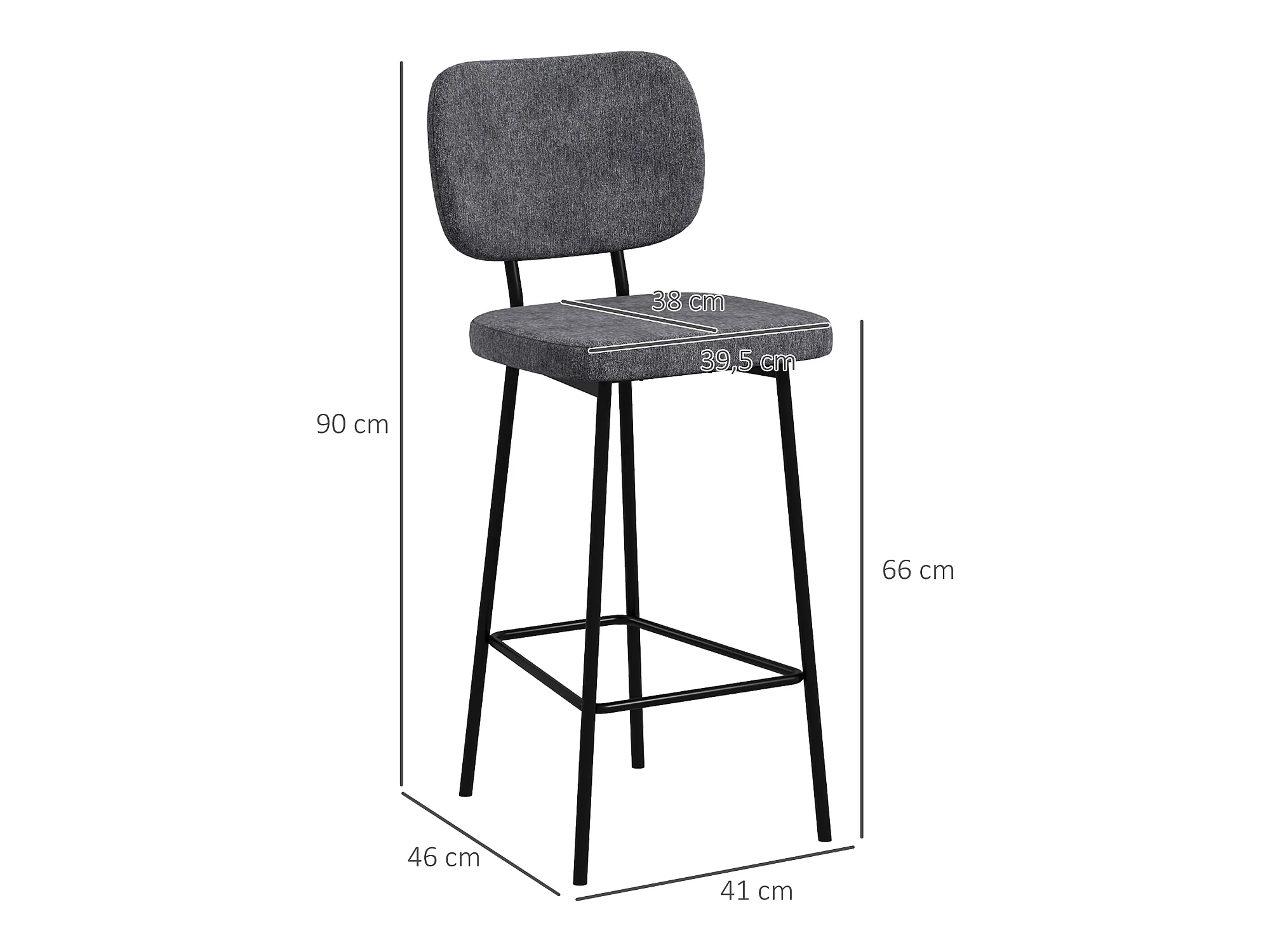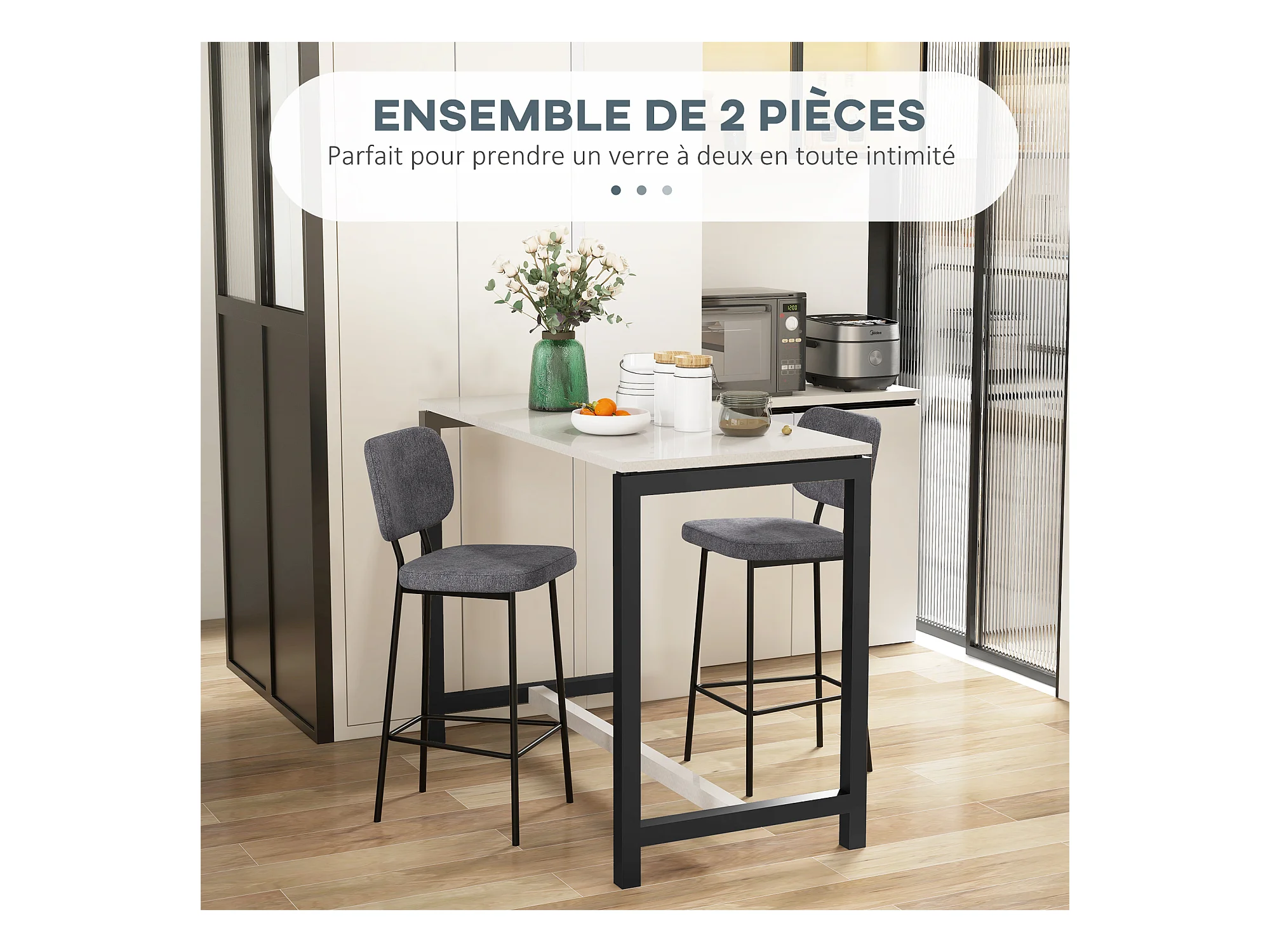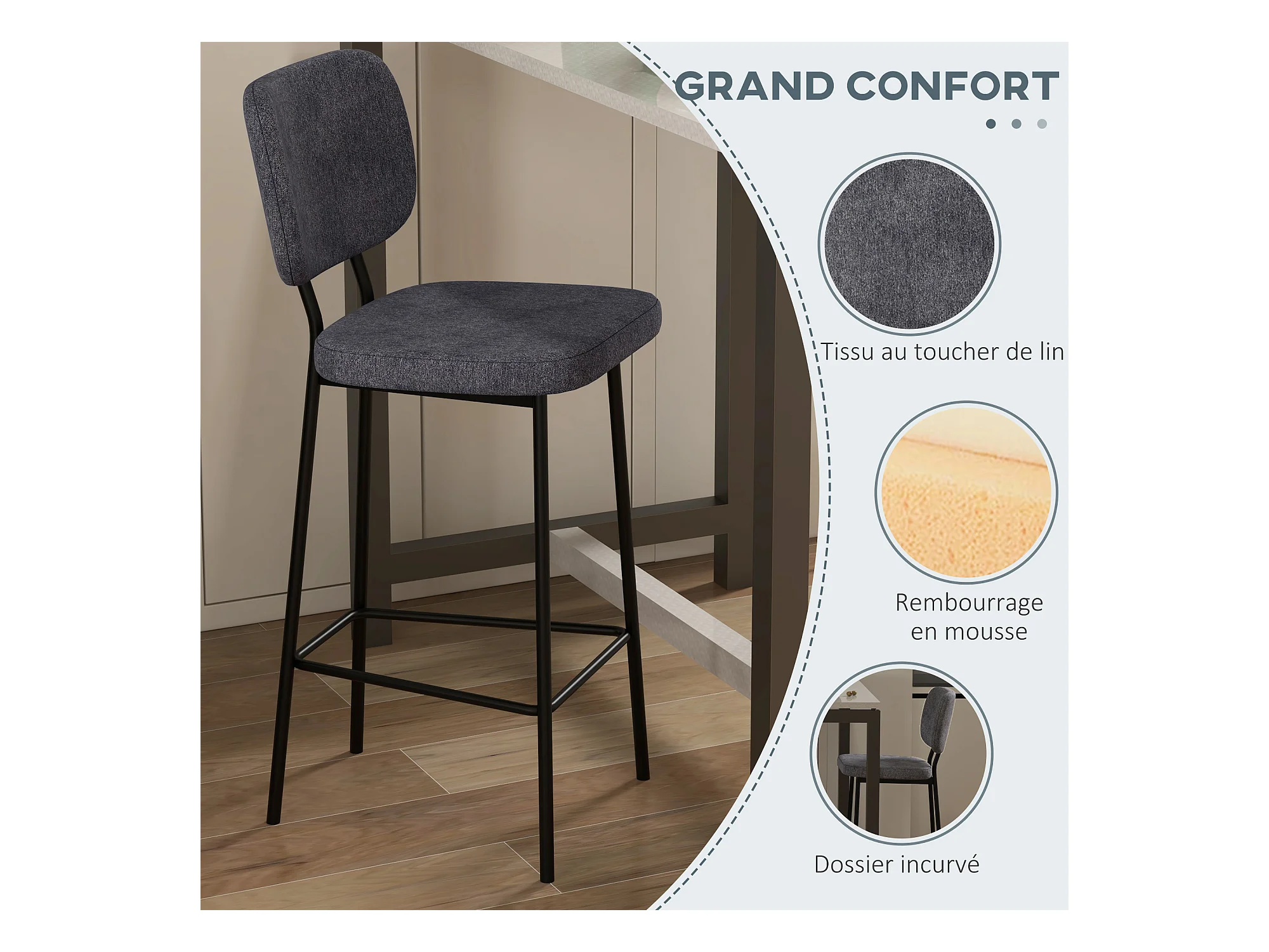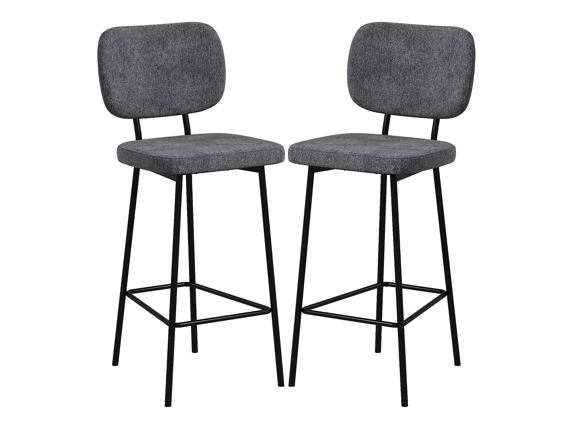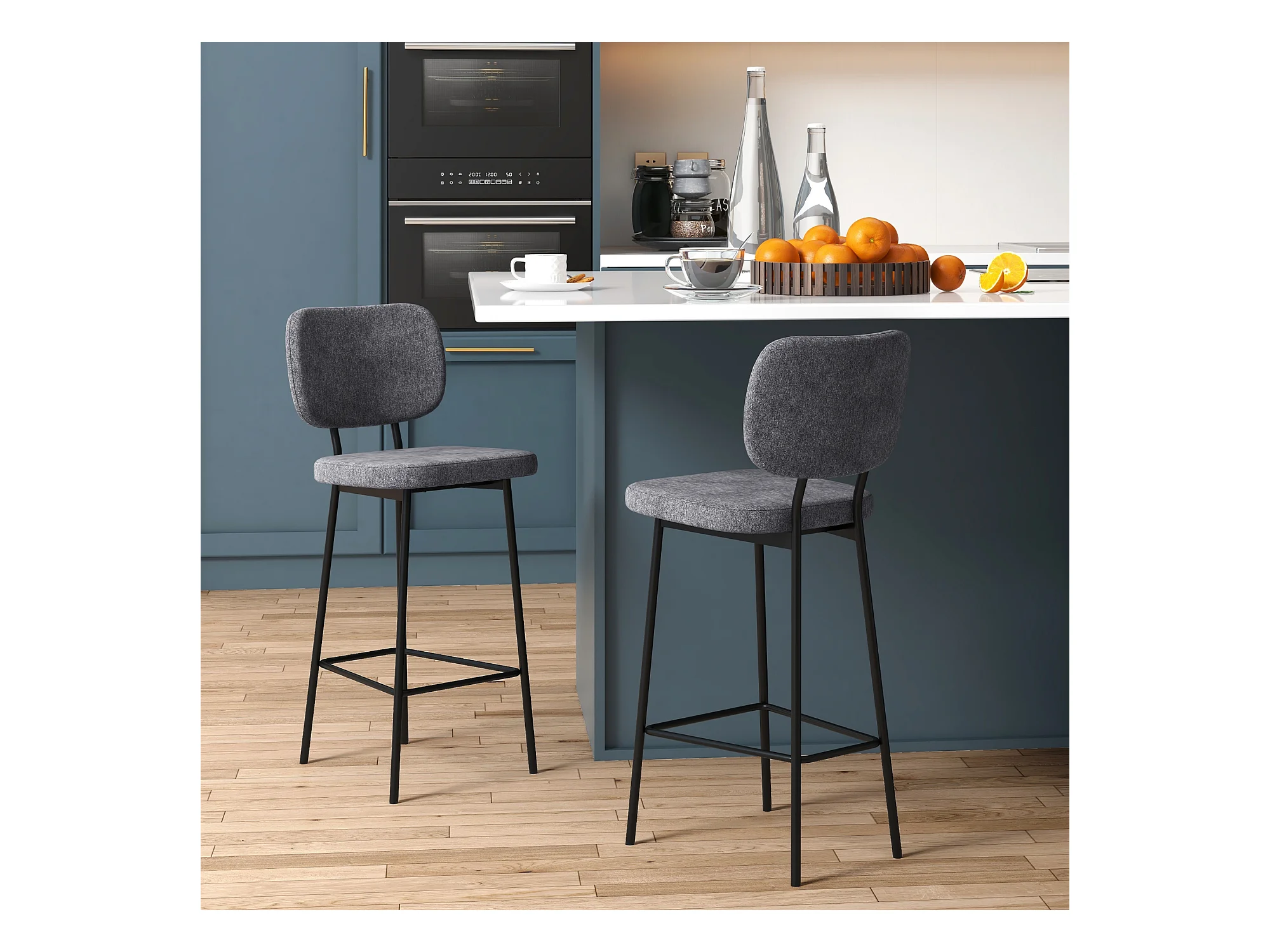 Lot de 2 tabourets de bar style néo-rétro piètement acier noir repose-pied intégré tissu gris