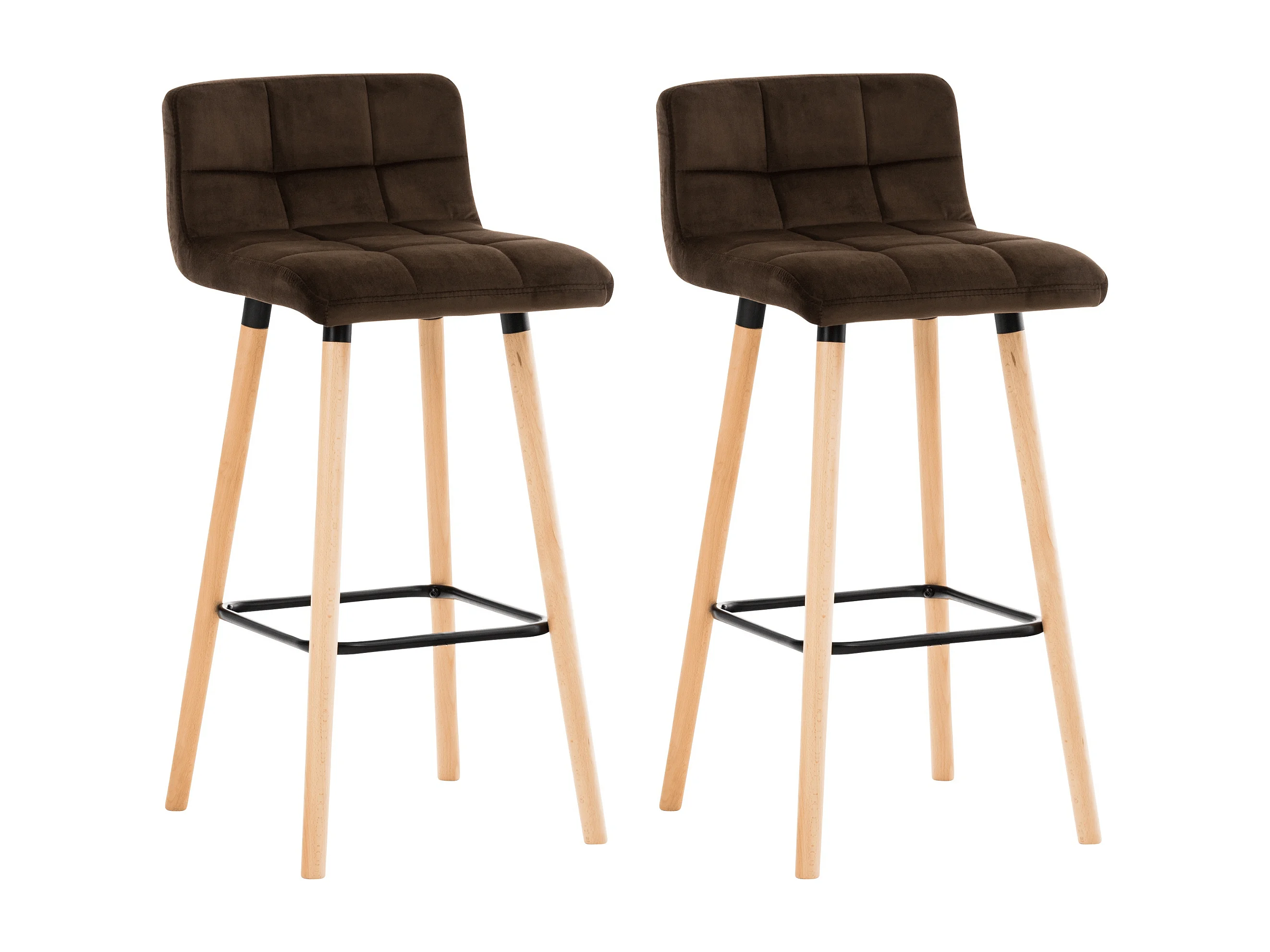 Lot de 2 Tabouret de bar - Velours - Marron - Lincoln