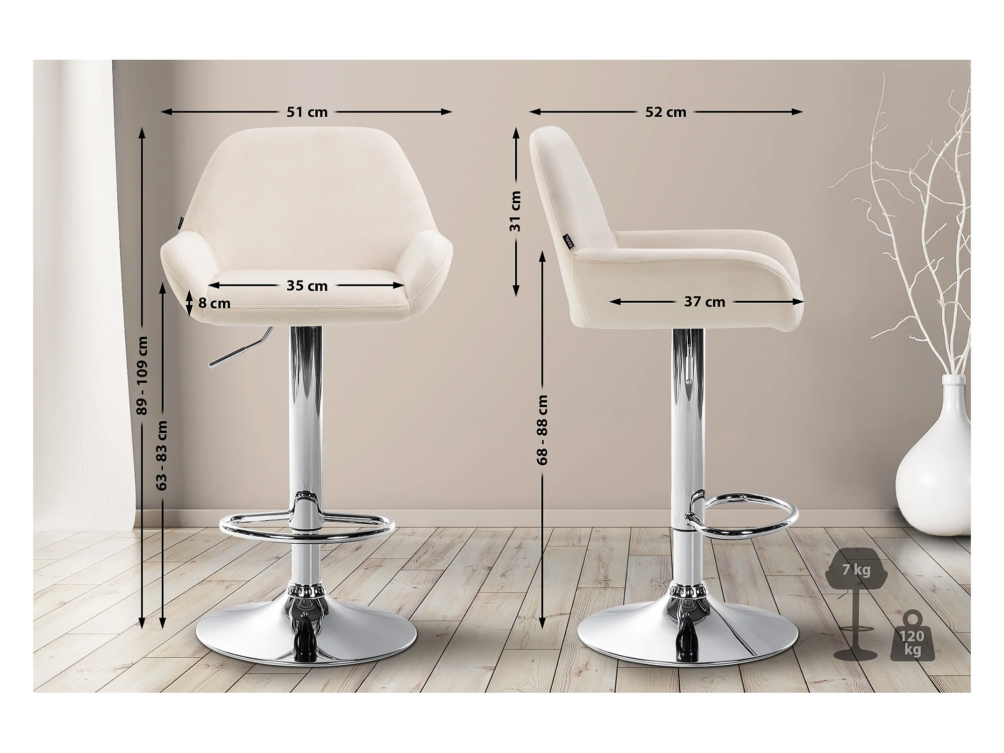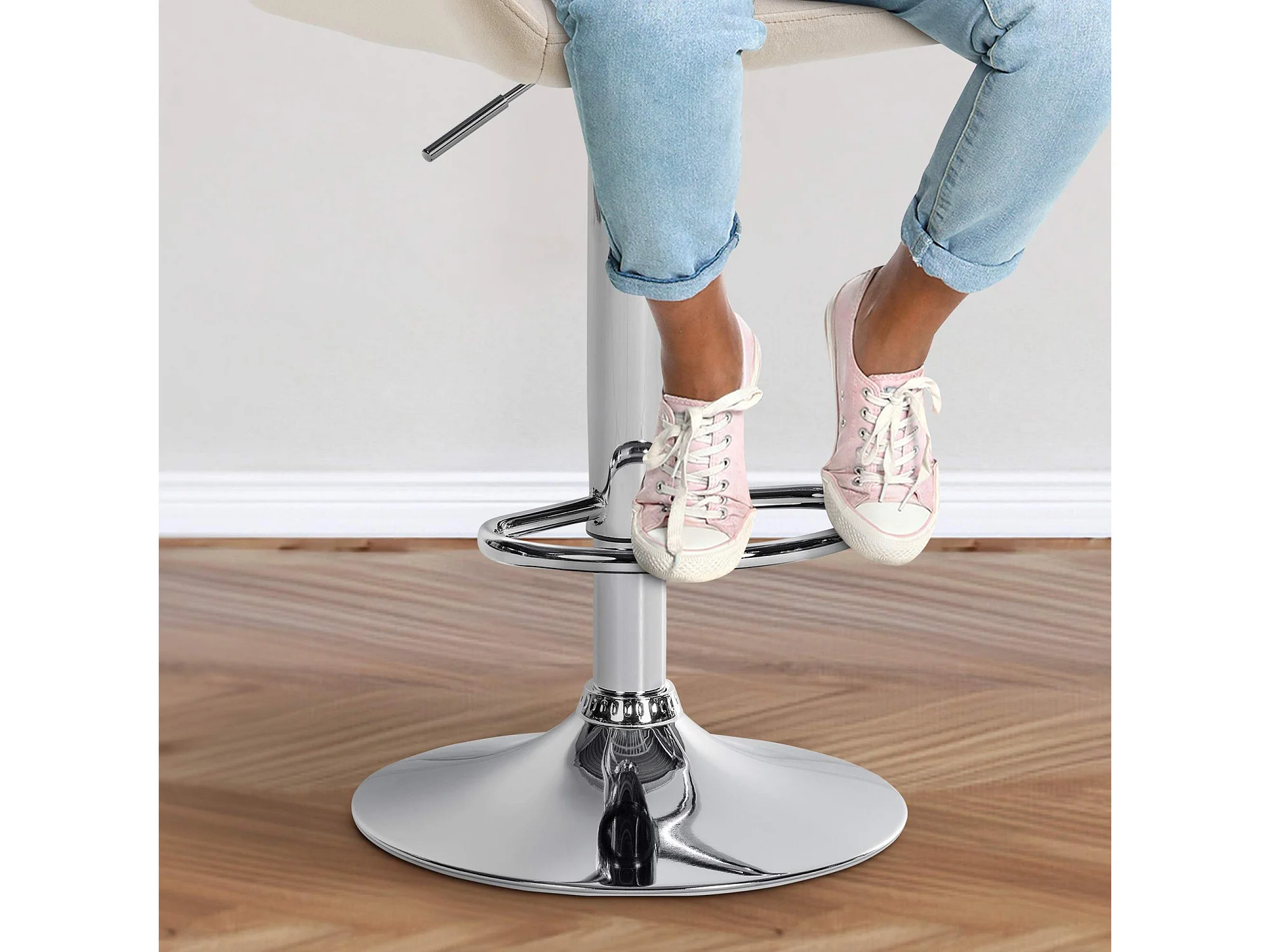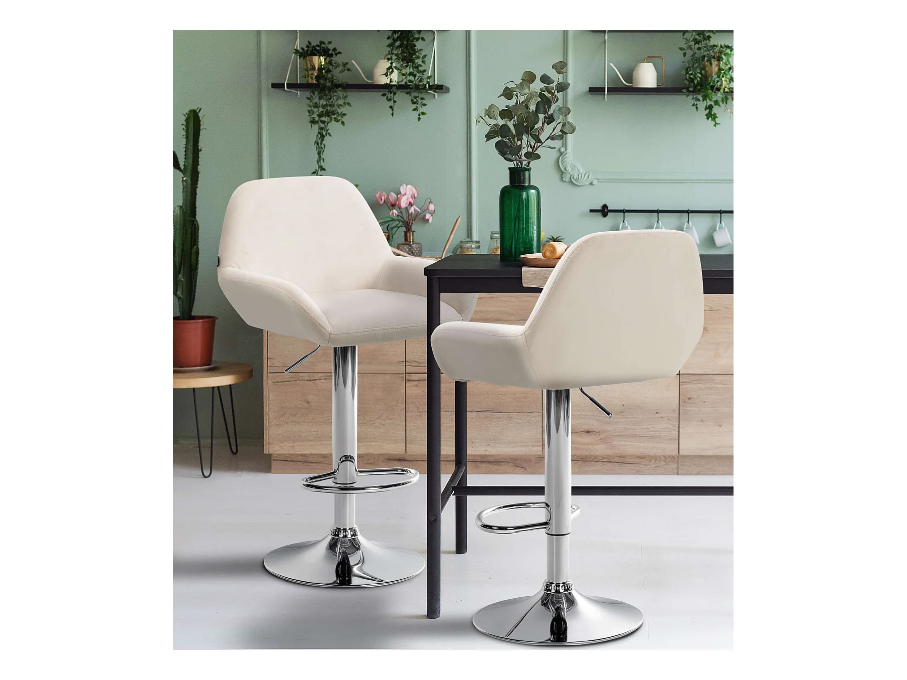 Lot de 2 Tabouret de bar - Velours - Crème - Braga