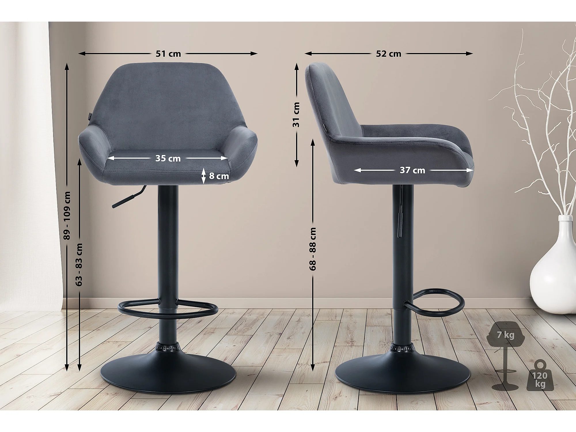 Lot de 2 Tabouret de bar - Velours - Gris foncé - Braga