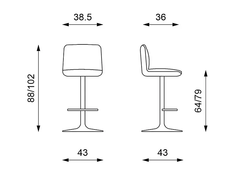 Lot de 2 tabourets hauts en tissu gris anthracite "Spot" avec repose-pieds et vérin à gaz cm 36x38,5 88h