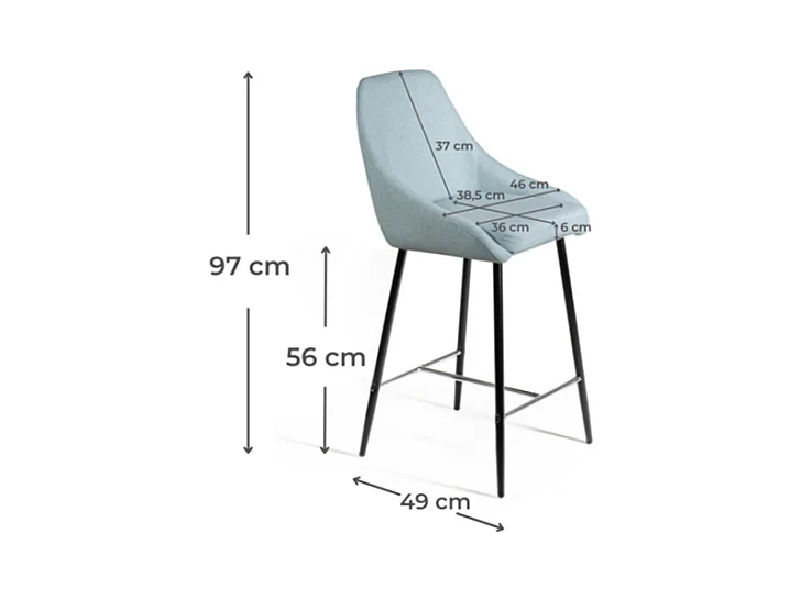 Lot de 2 tabourets hauts en tissu vert aqua avec repose-pieds en métal "Petit" cm 46x49 97h